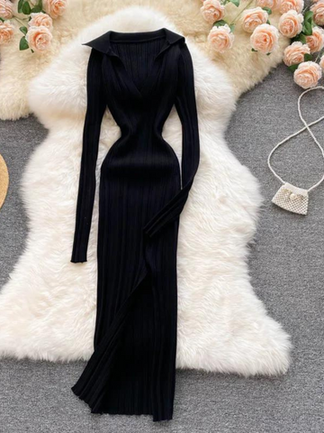 An elegant long sleeve midi autumn/winter dress is typically worn during the cold months of...