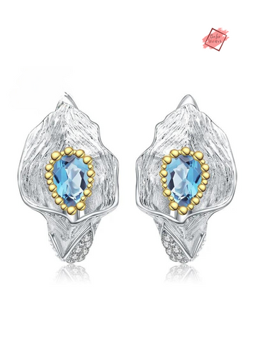 Discover timeless elegance with our exquisite Swiss Blue Topaz Leaf Stud Earrings. Crafted for women...