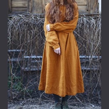 Step into spring with style in our long-sleeve cotton and linen dress, featuring a charming...