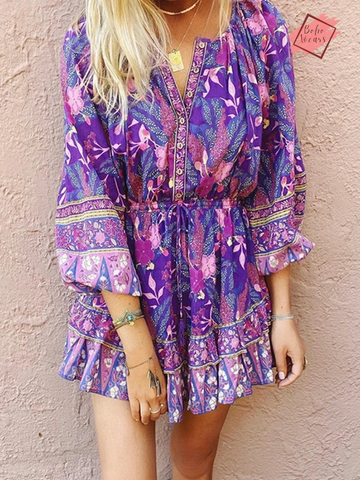 Women's Bohemian V-Neck Mini Dress: Spring Collection! Introducing the BohoWears Women's Bohemian V-Neck Mini Dress,...