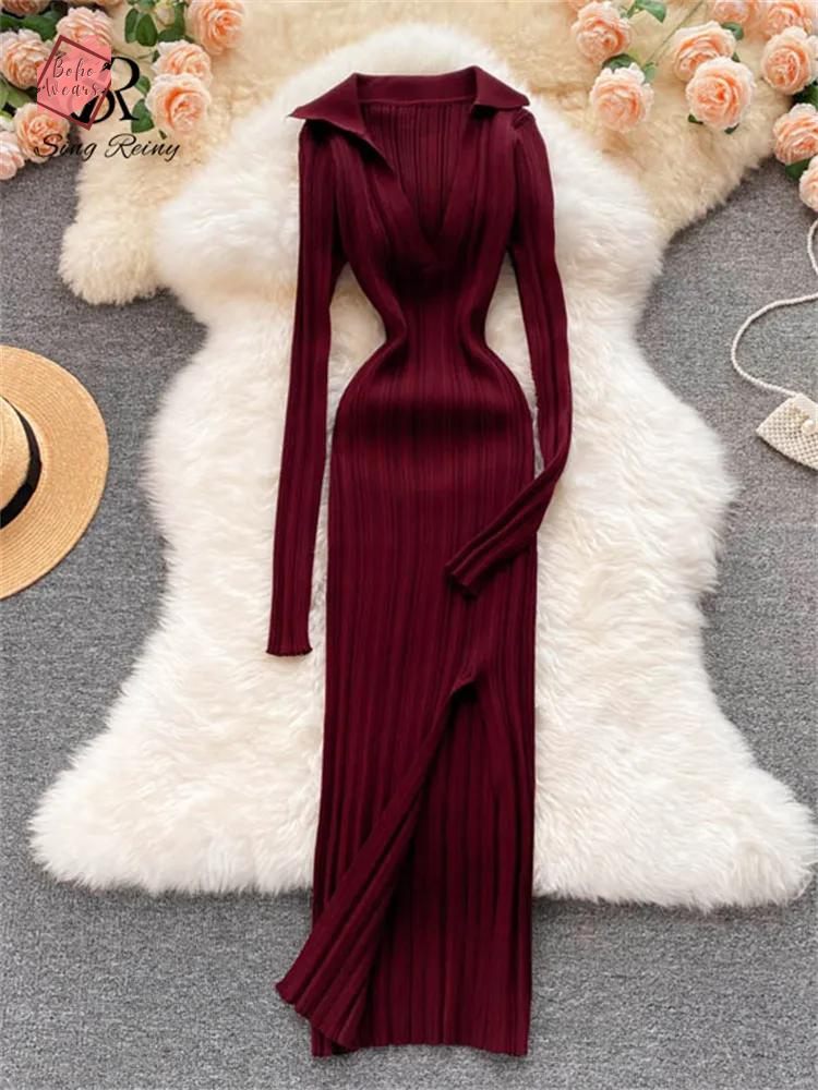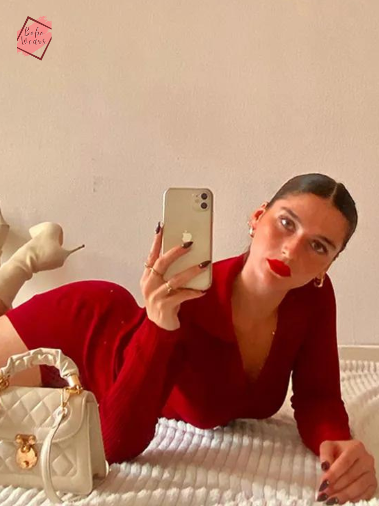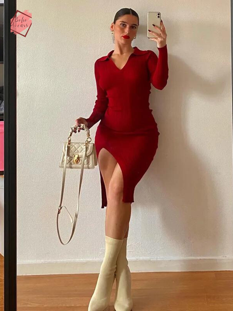 Introducing our elegant and versatile Long Sleeve V-Neck Pencil Dress for women, perfect for the autumn season. This Korean-style dress combines sophistication and comfort seamlessly and is exclusively available at BohoWears.com.