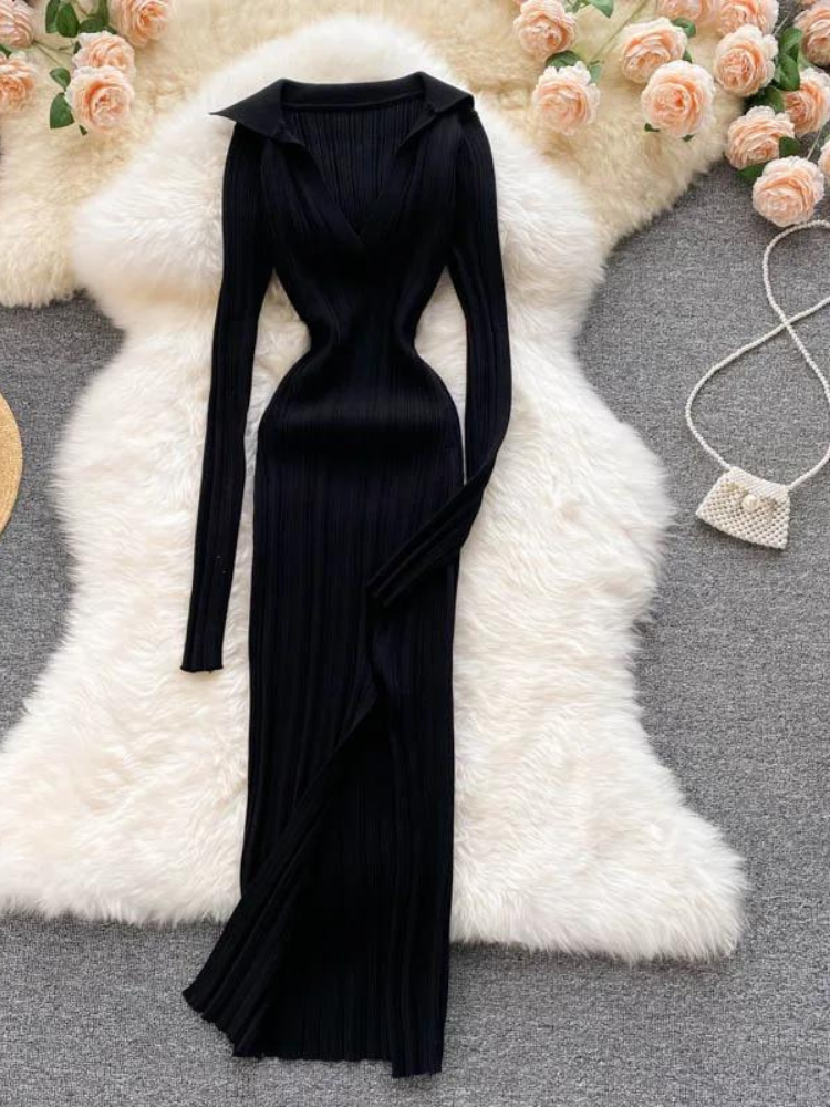 Elevate your Korean-style fashion with our Long Sleeve V-Neck Pencil Dress, exclusively available at BohoWears.com.