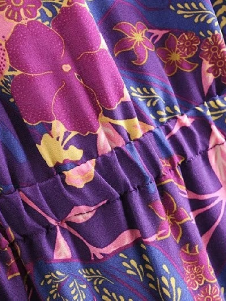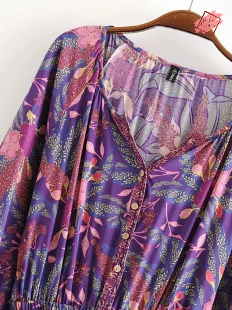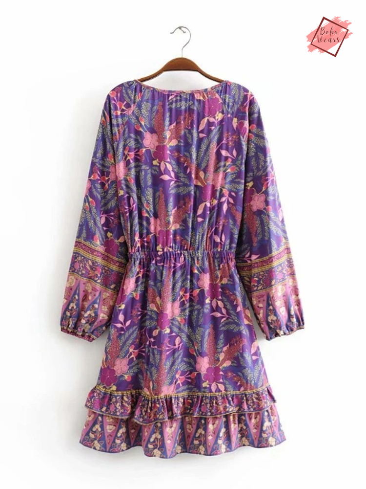 Floral Print V-Neck Bohemian Mini Dress | Vintage Chic Women's Fashion