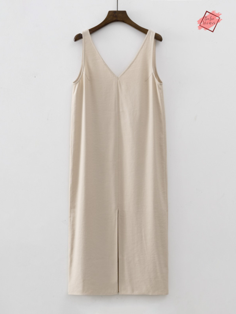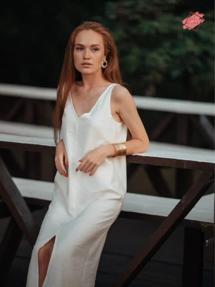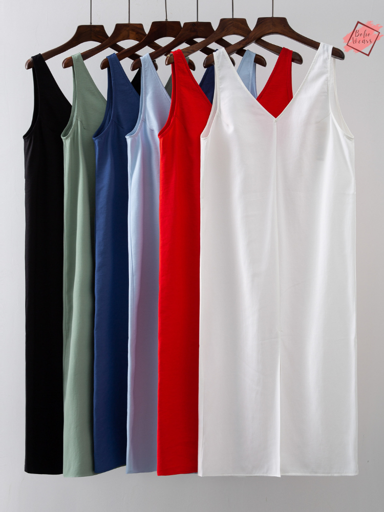 Elevate your summer wardrobe with our White V-Neck Sleeveless Split Tank Dress, exclusively designed for the modern, middle-aged woman who values style and comfort.