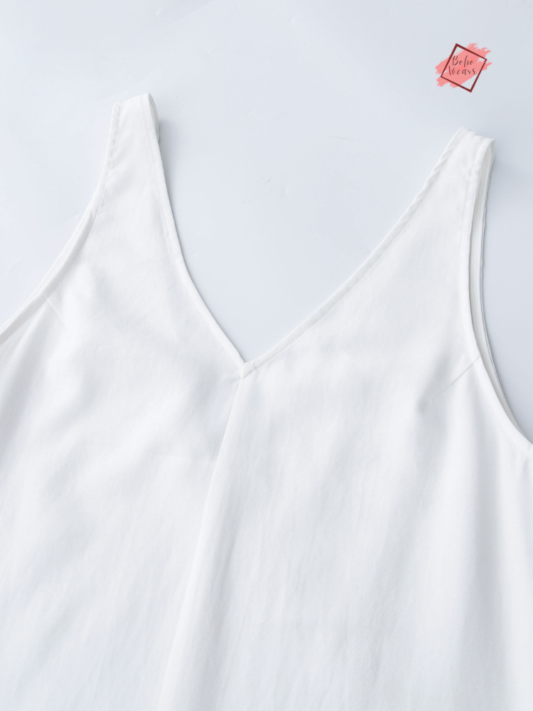Don't miss out on making a fashion statement this summer. Order your BohoWears White V-Neck Sleeveless Split Tank Dress today and turn heads wherever you go!