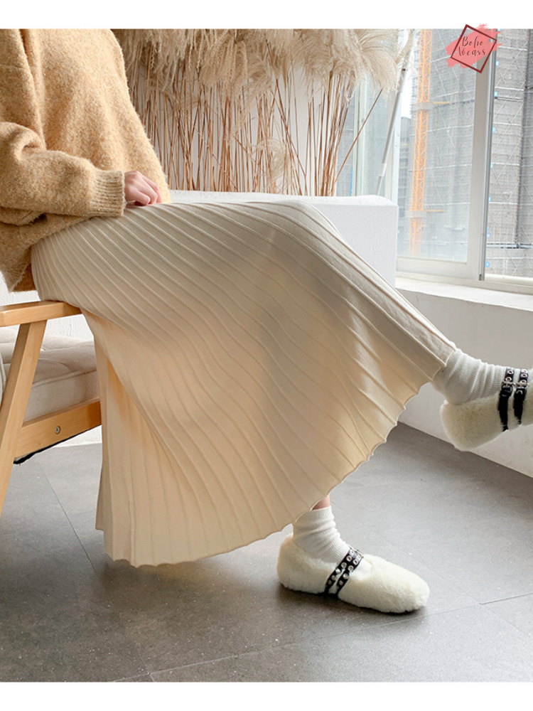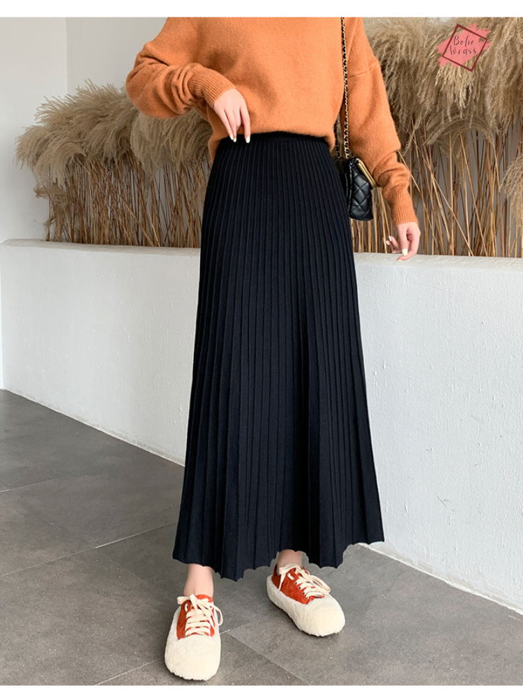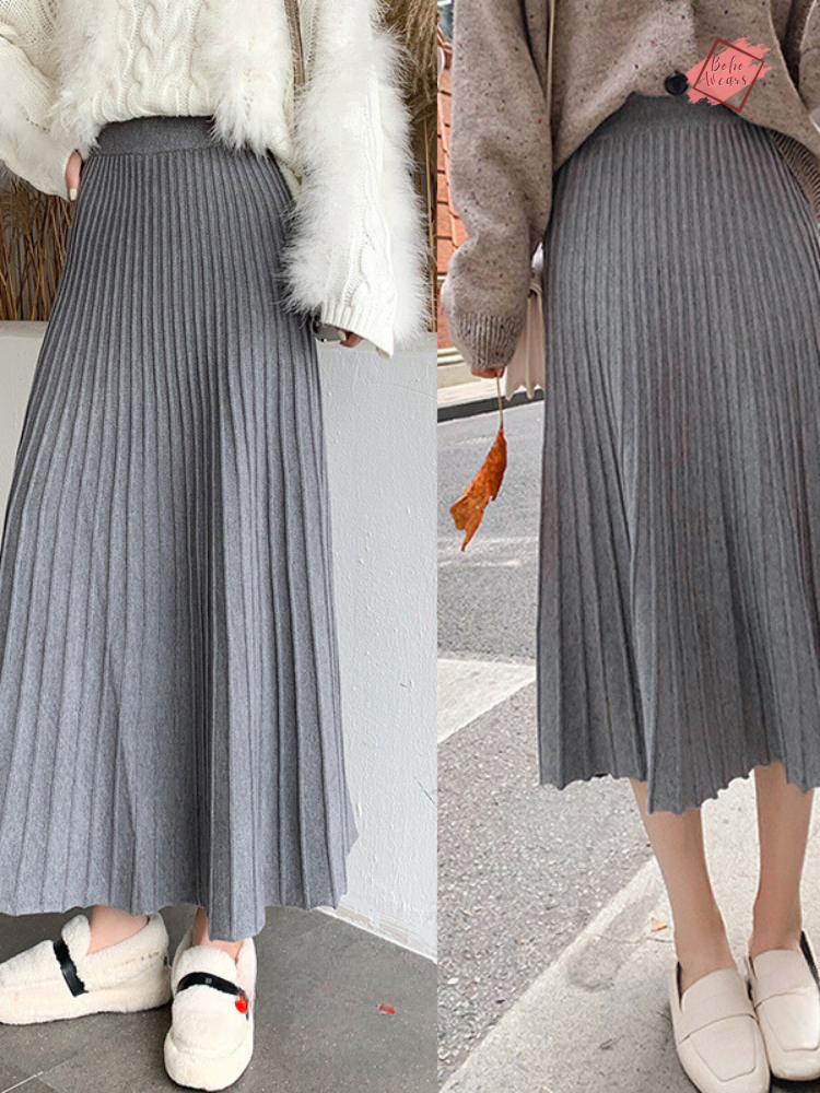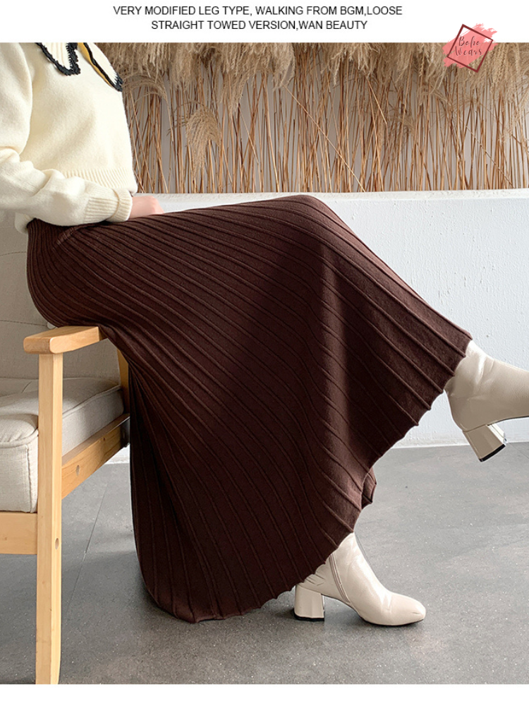 Crafted from high-quality cotton material, these ankle-length skirts provide a perfect blend of warmth and breathability. The knitted fabric ensures both durability and a cozy feel, making them a must-have addition to your cold-weather wardrobe.