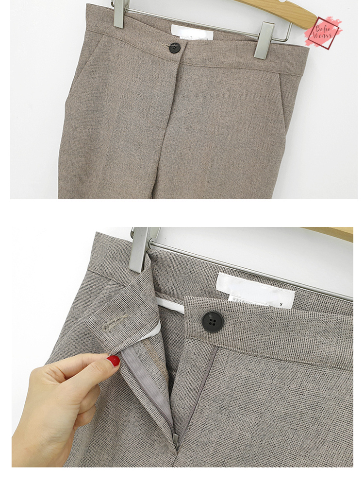 - Pants: Ankle-length pencil pants, with a mid-waist and a zipper fly, complete the look with a flattering and sleek finish.
