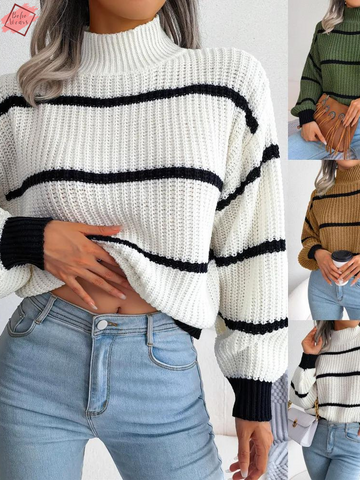 Step into the cooler months in style with our Loose Fit Striped Turtleneck Knit Sweater....