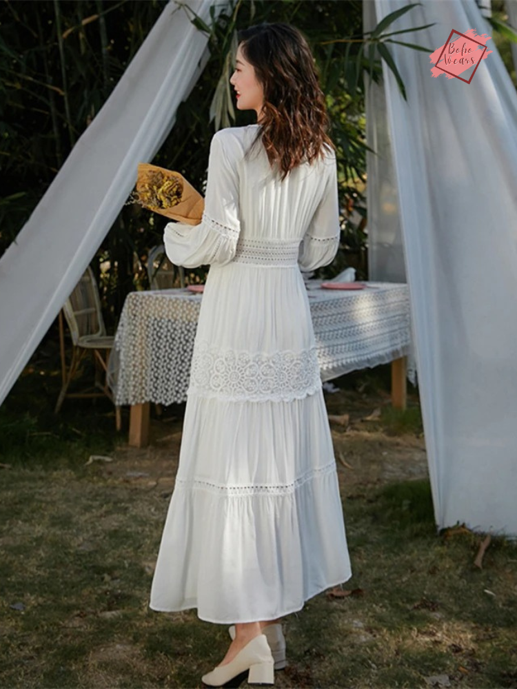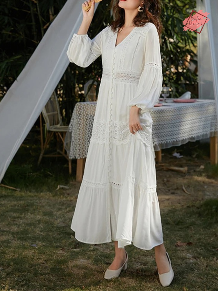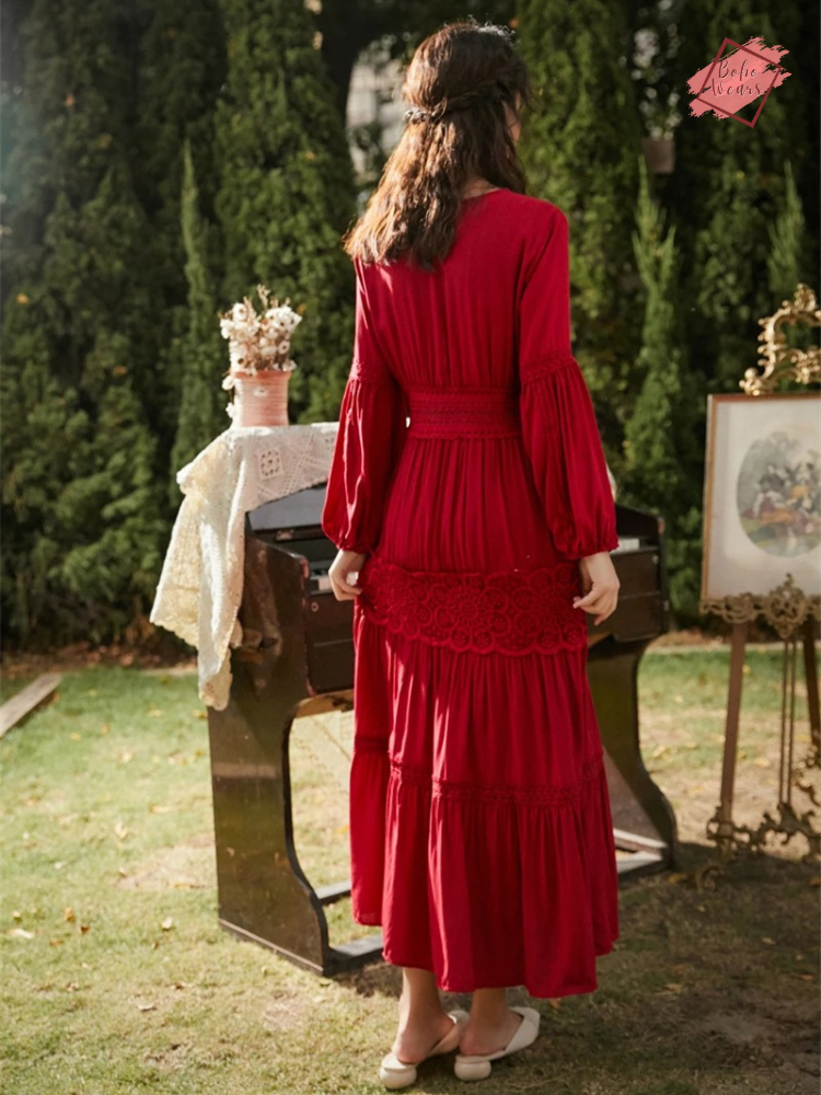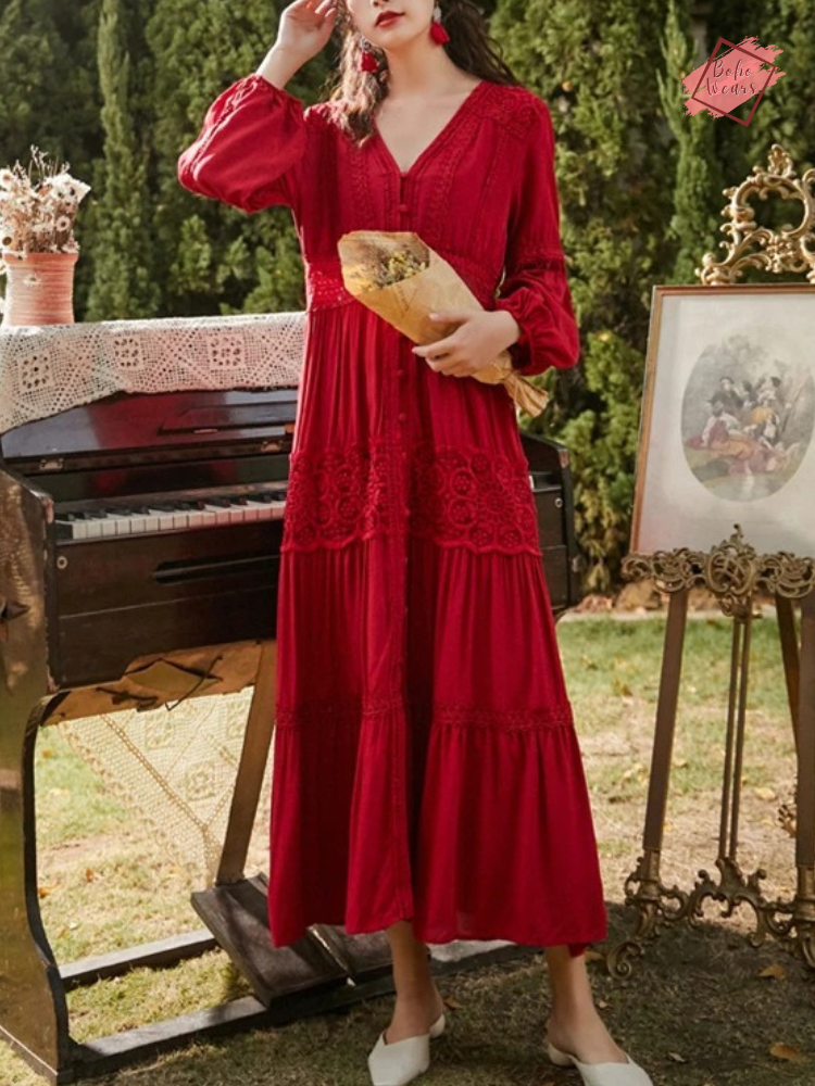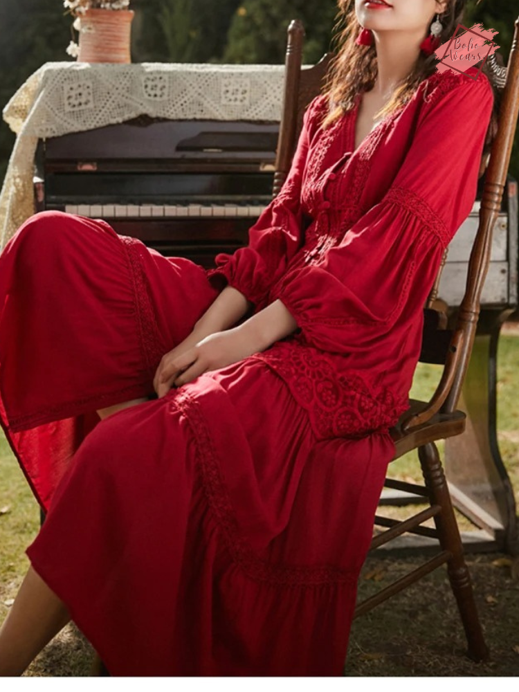 Bohemian Maxi Dress for Women: Vintage Chic, V-Neck Summer Boho Dress with Tassels