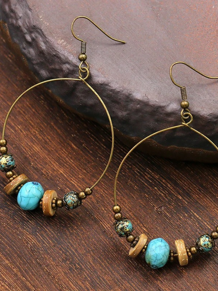 Bohemian Vintage Beaded Hoop Earrings - Fashionable Round Earrings for Women
