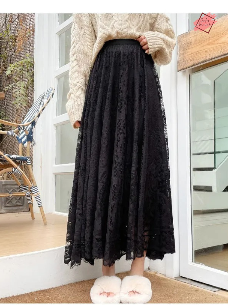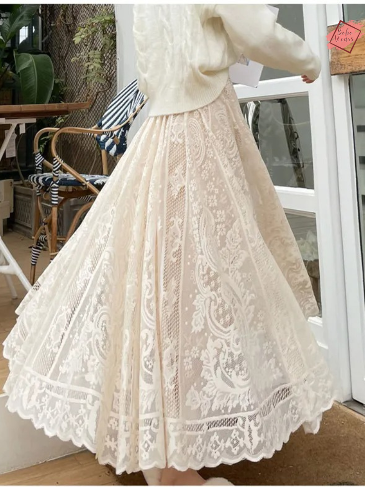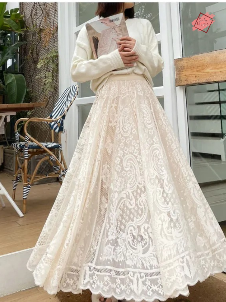 Boho Crochet Lace Maxi Skirt - Vintage Inspired Midi Skirt