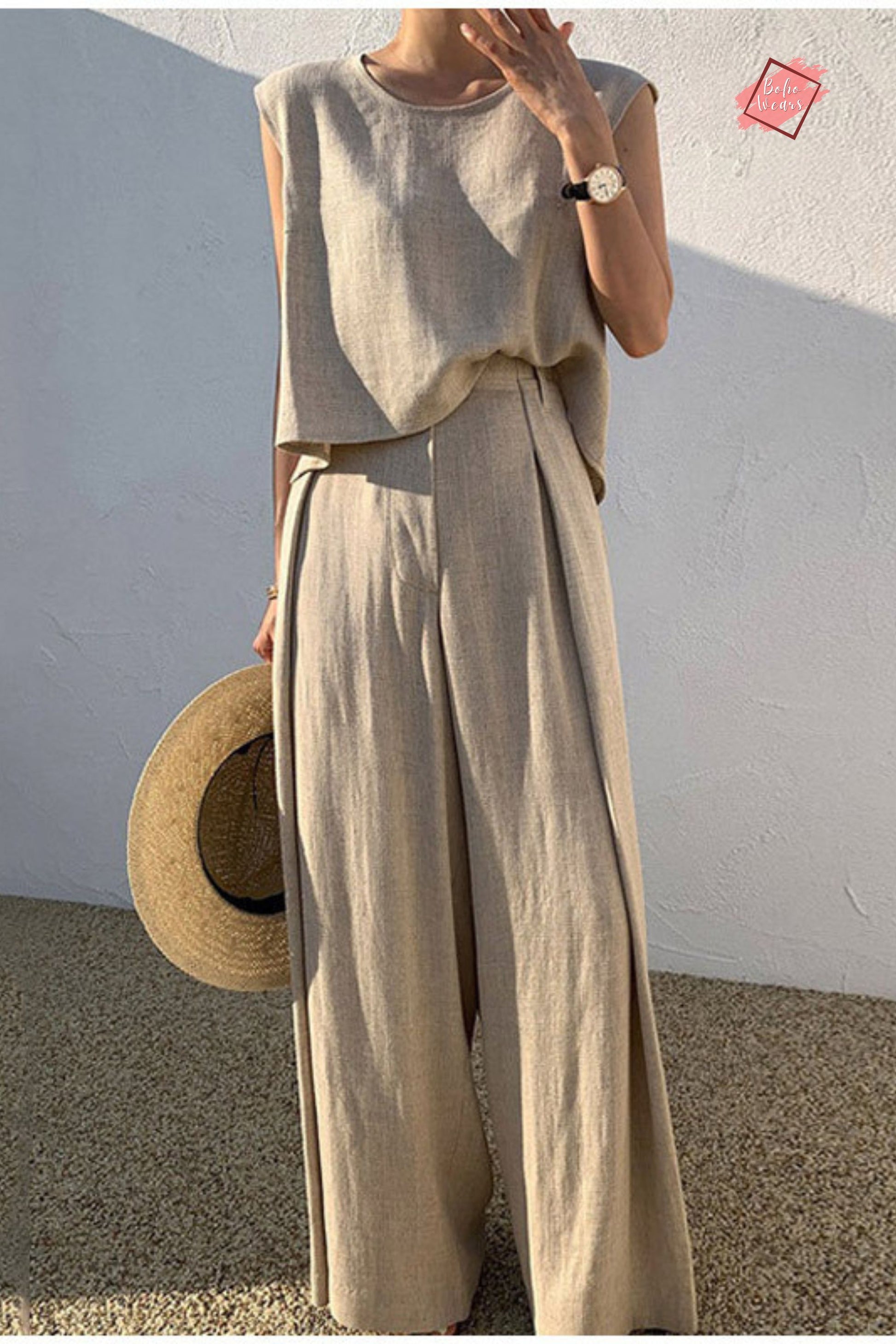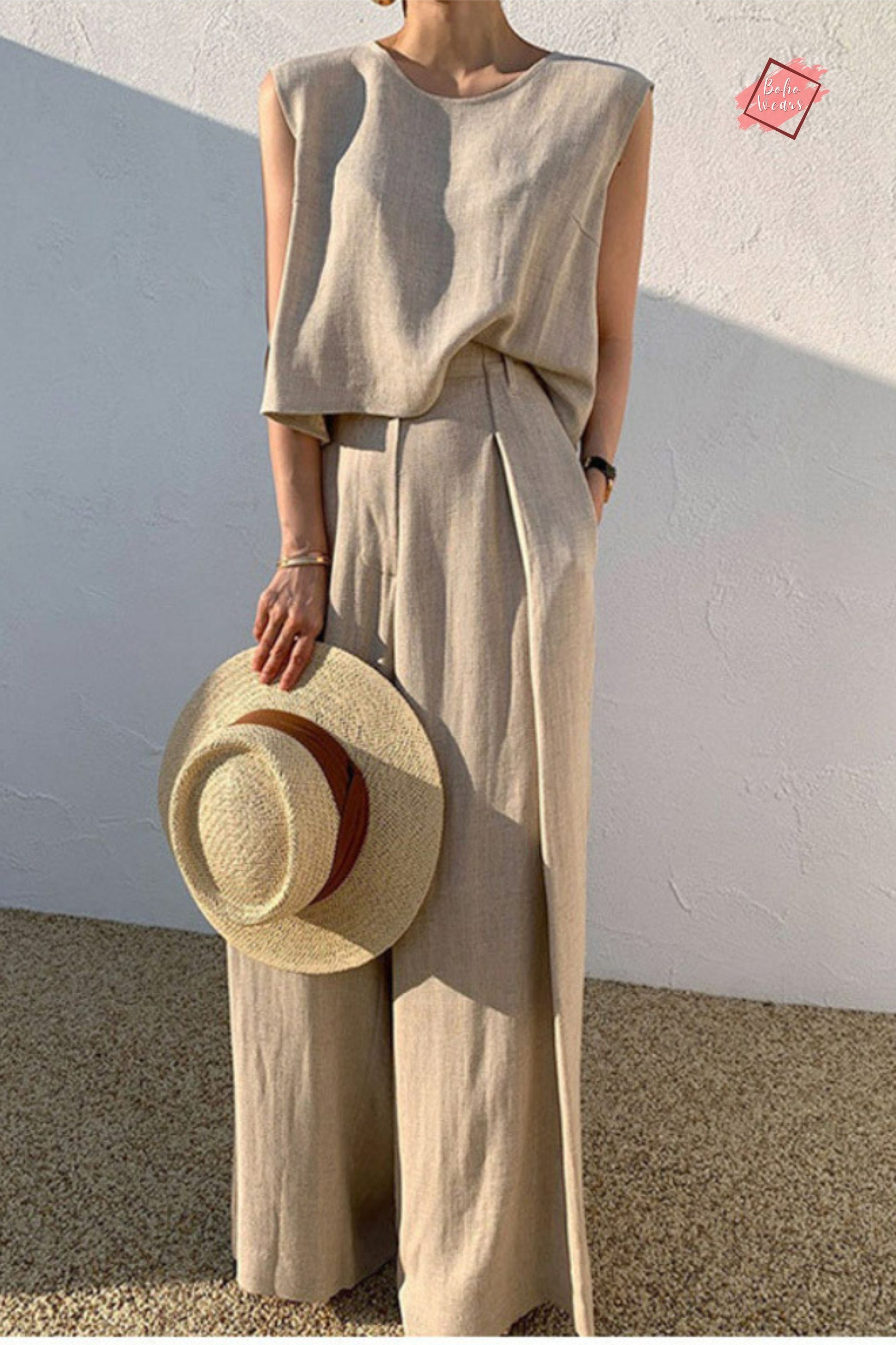 Our khaki two-piece set is perfect for everyday wear. The neutral khaki tank and wide leg pants make an easy boho-chic outfit for relaxed weekends. The oversized fit provides laidback comfort and style.