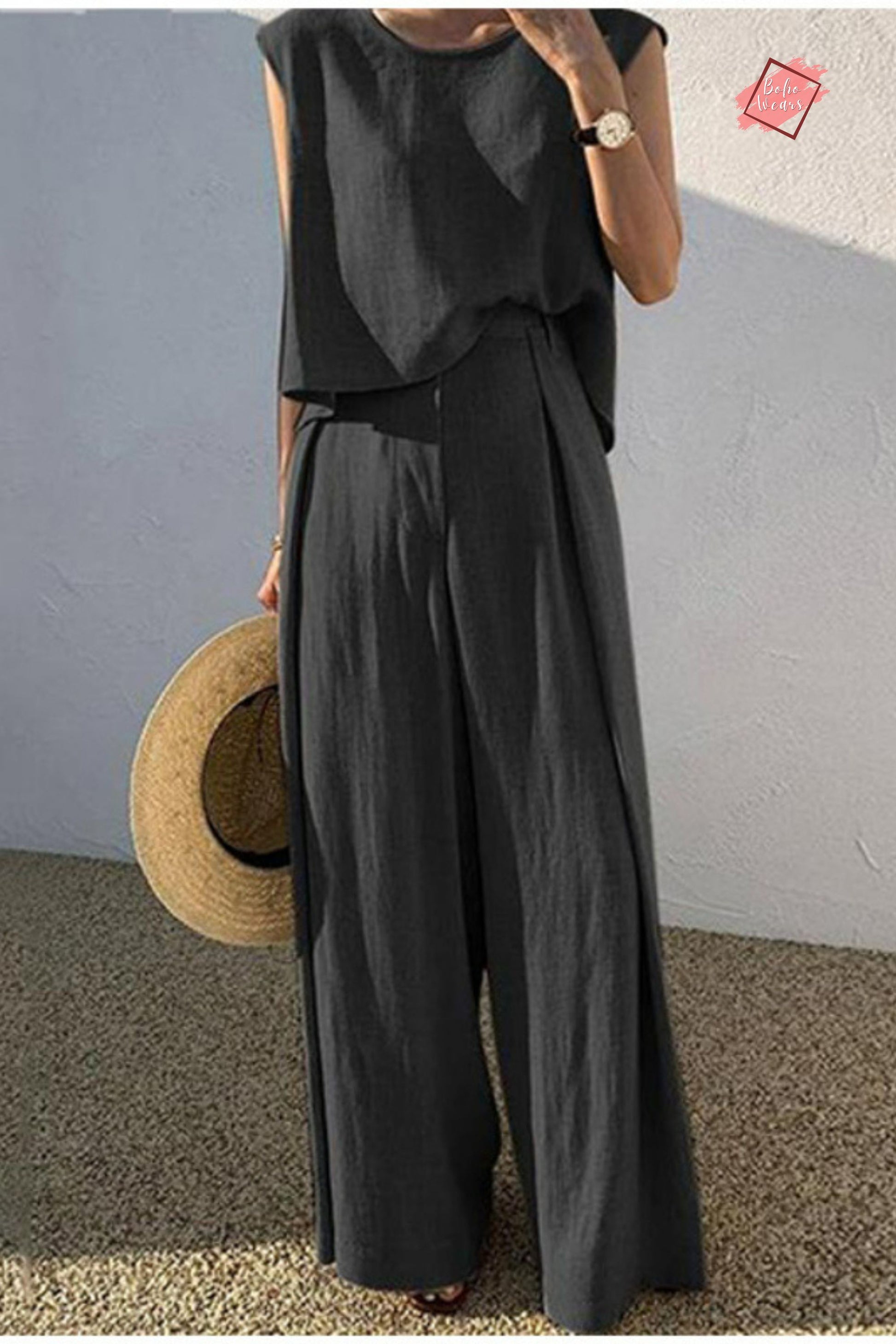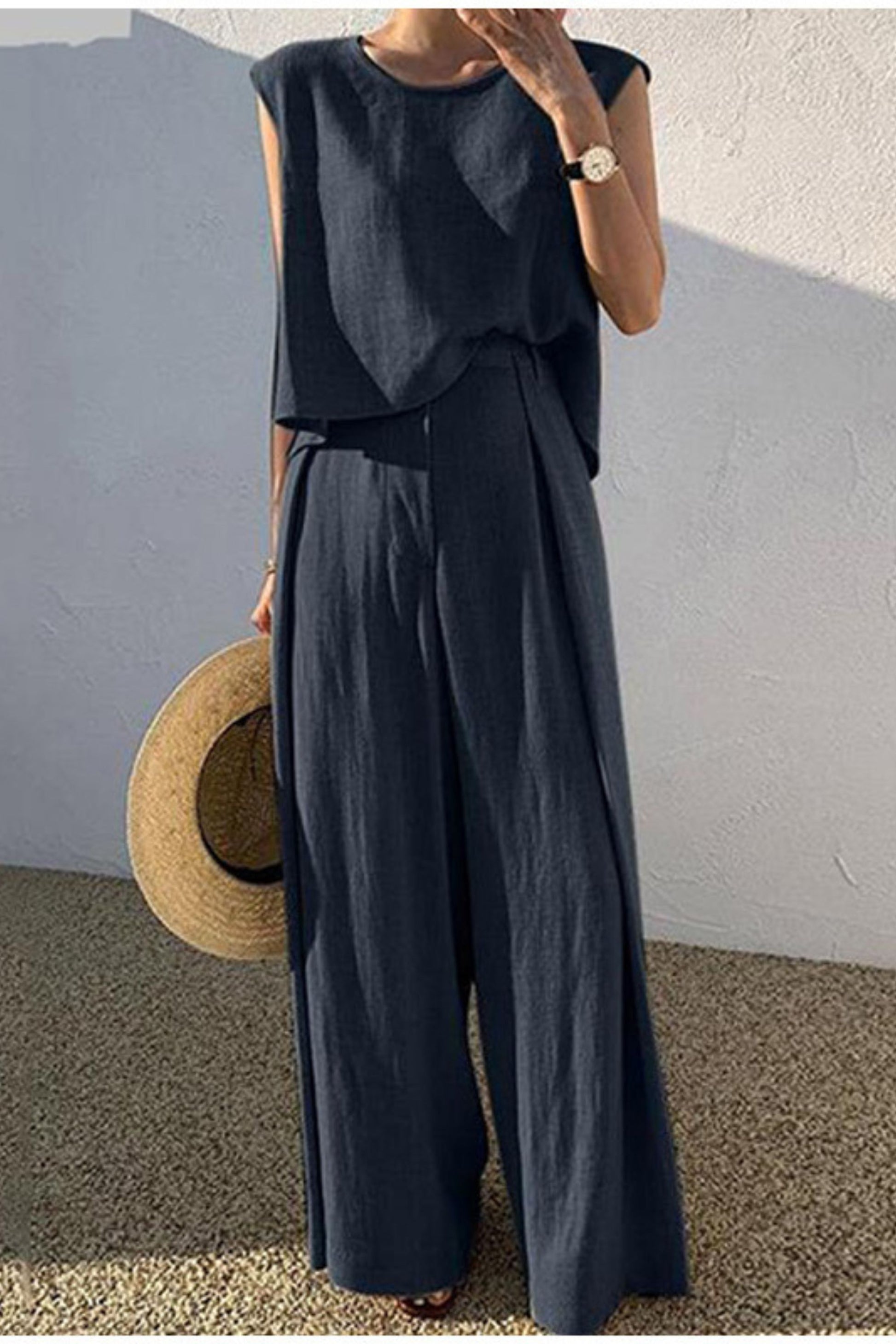Navy blue is always in style. Our navy blue tank top and pants set oozes effortless sophistication. Pair it with wedges for day or night to complete the nautical vibe.