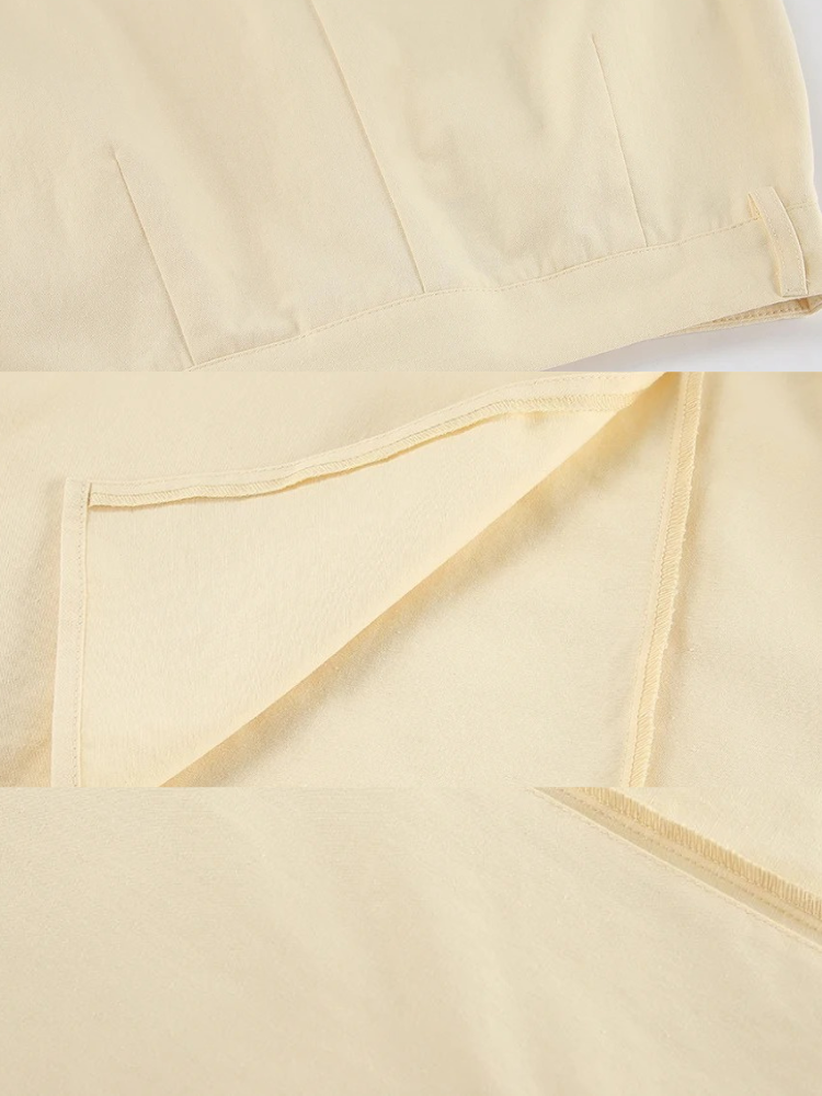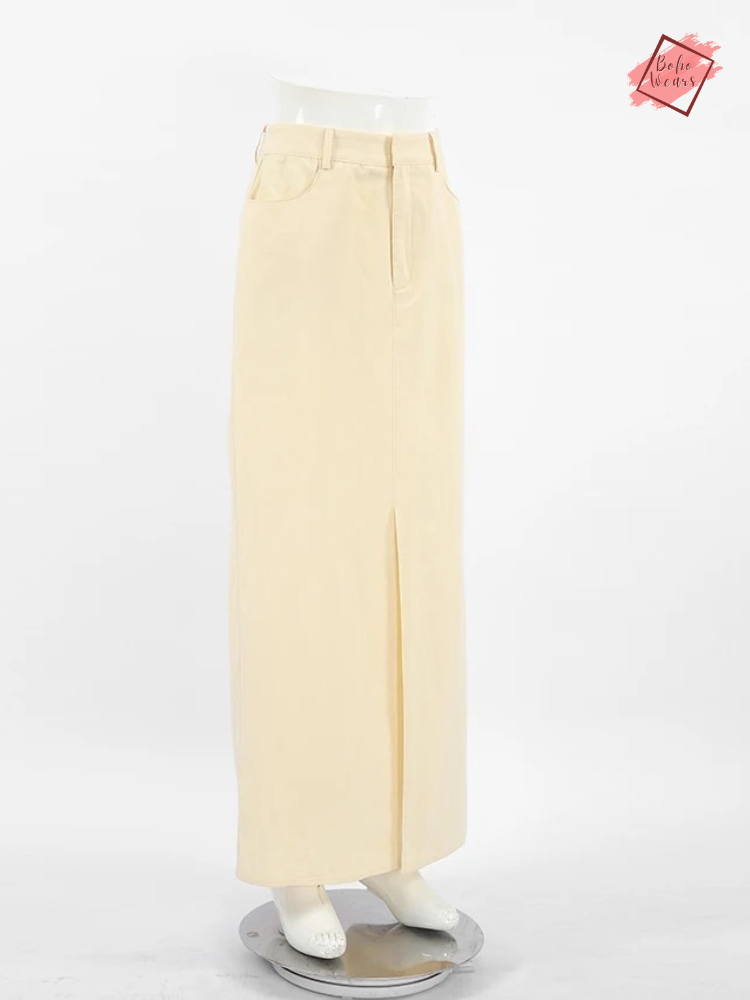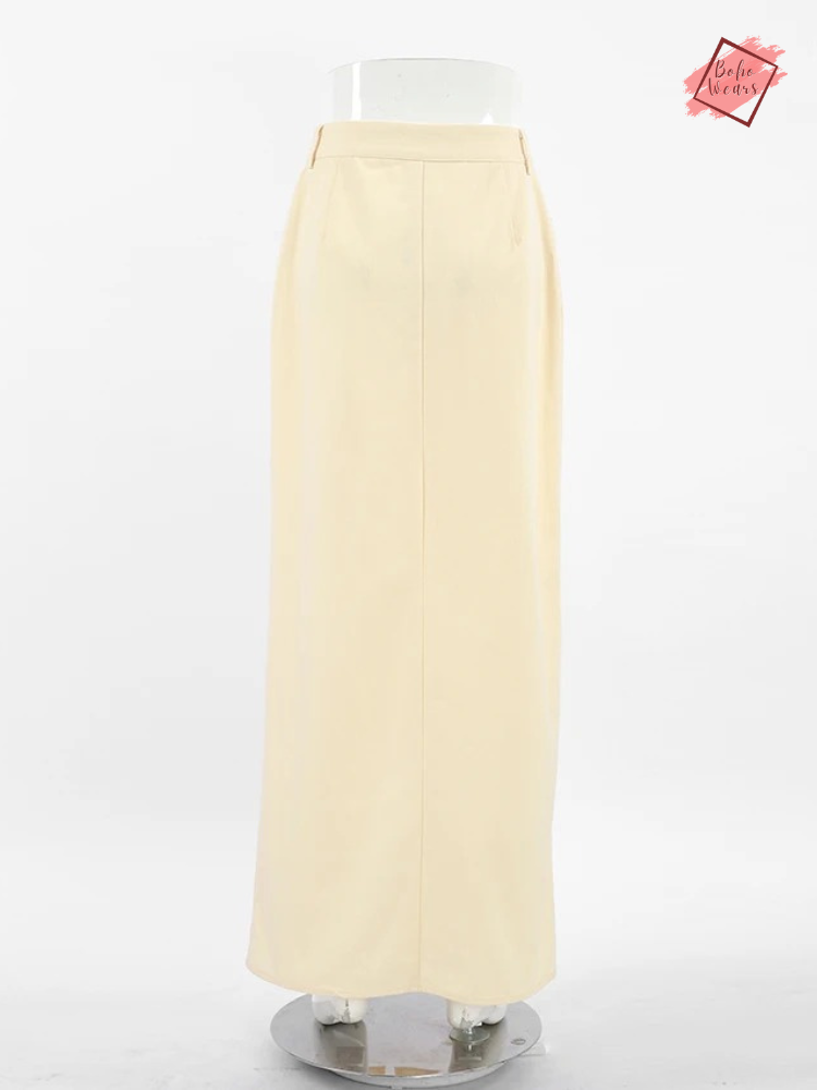 Chic Apricot High Waist Split Skirts for Women - Elegant Mid-Calf Office Cotton Skirts - Casual Straight Style for Street Fashion