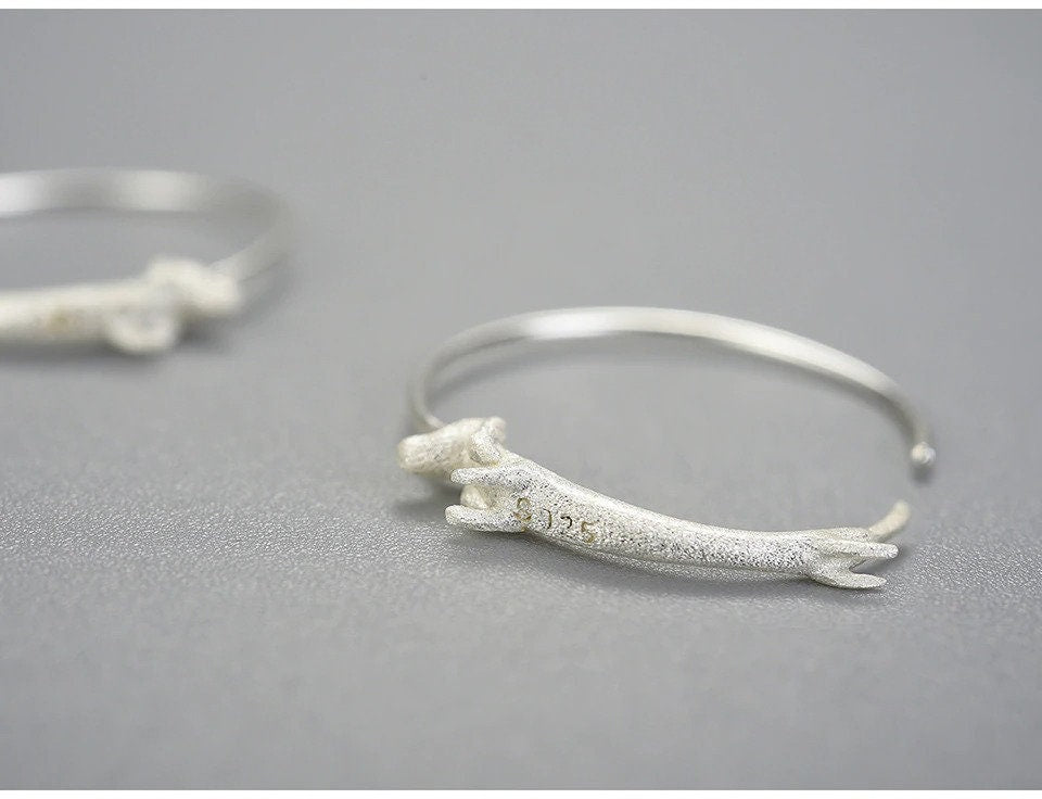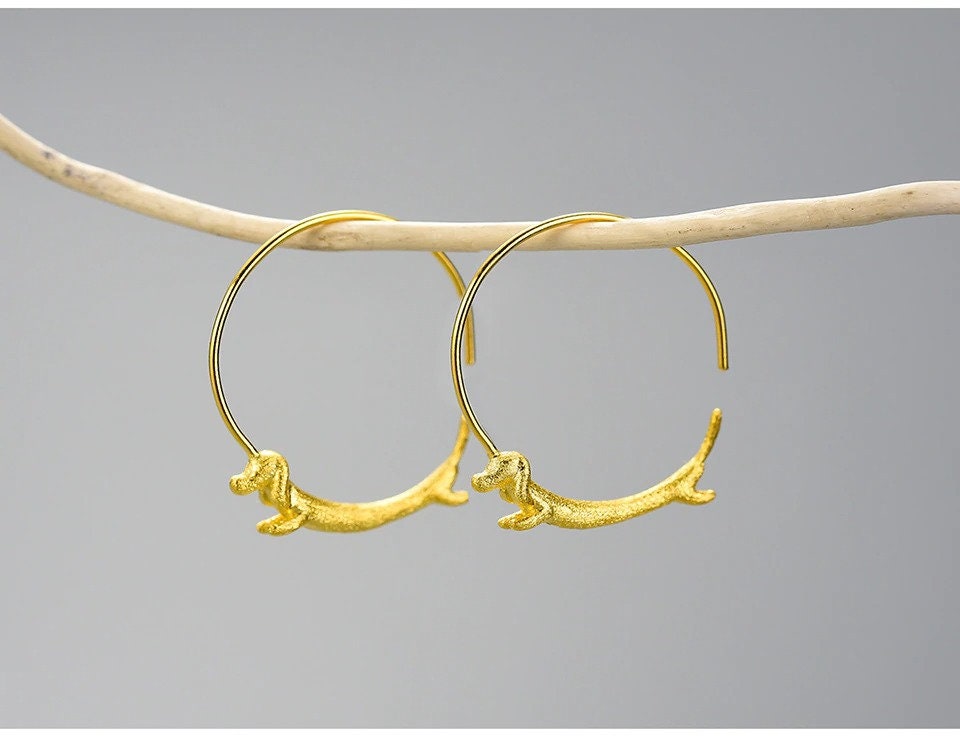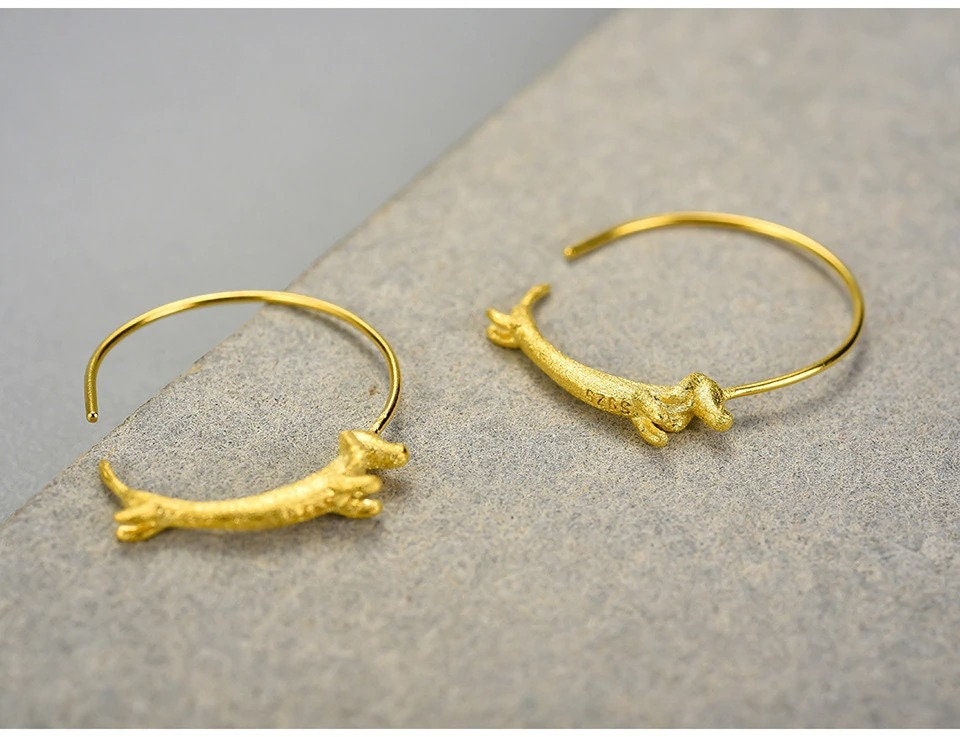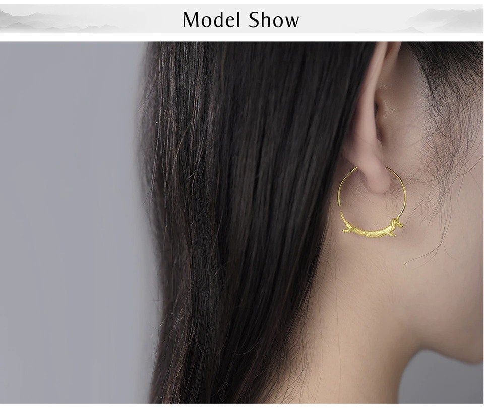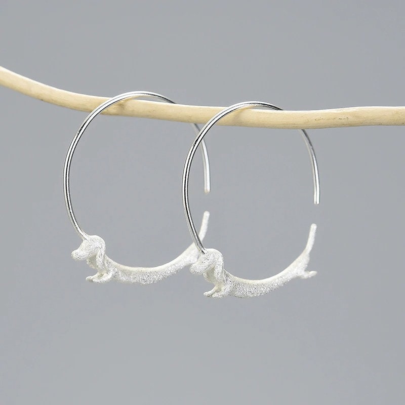 Libérez votre esprit bohème intérieur avec nos boucles d'oreilles en argent Boho uniques. Ces boucles d'oreilles pour chien en argent sterling 925 sont inspirées de l'adorable teckel, ce qui en fait le bijou parfait pour les amoureux des chiens .