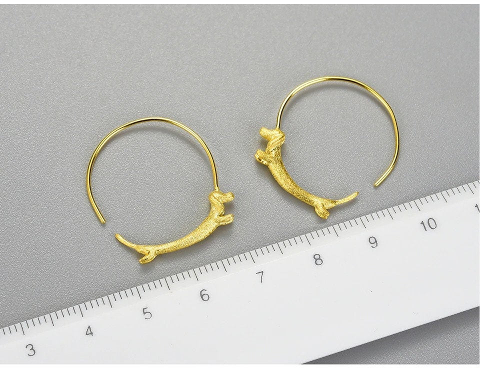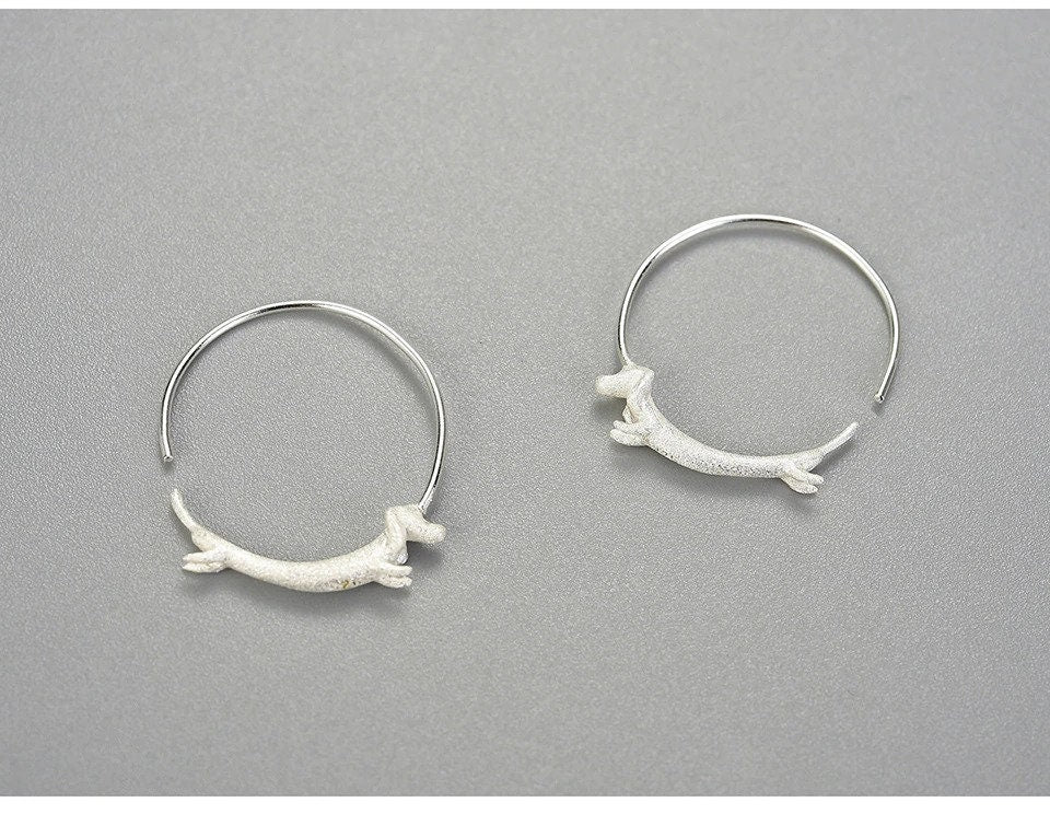 Boucles d'oreilles en argent sterling 925 avec gros cerceau rond pour chien teckel