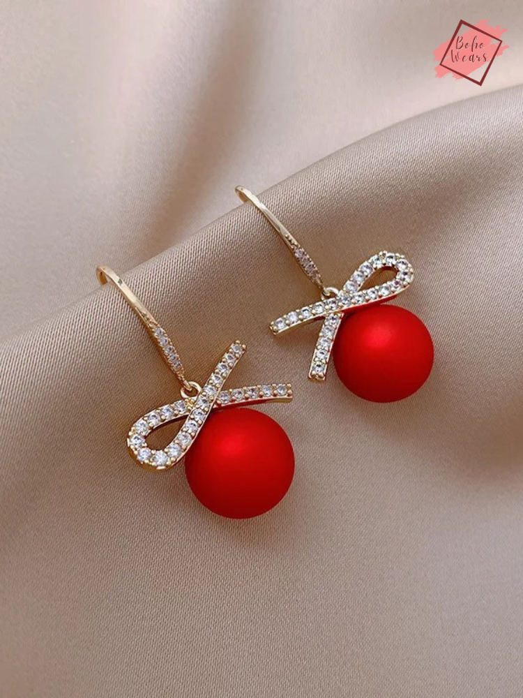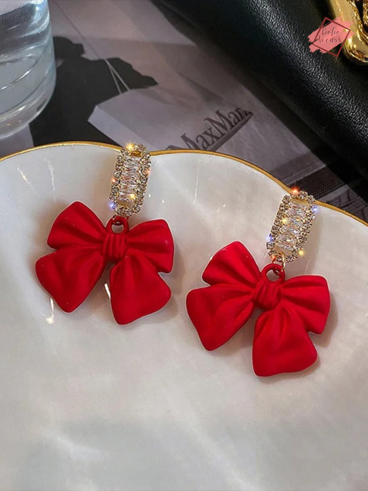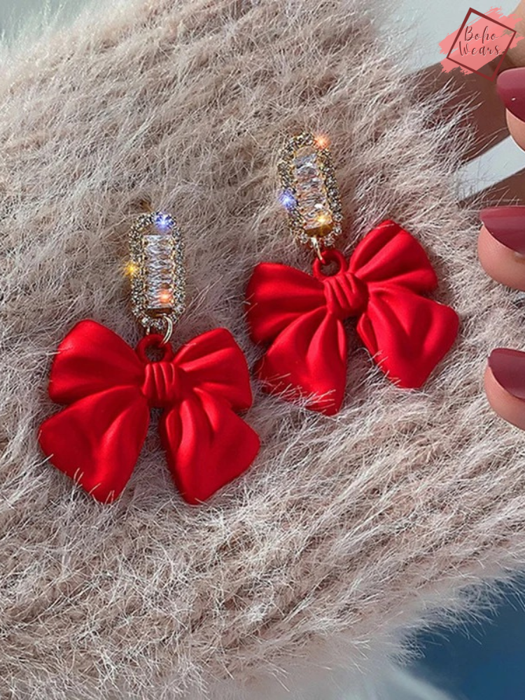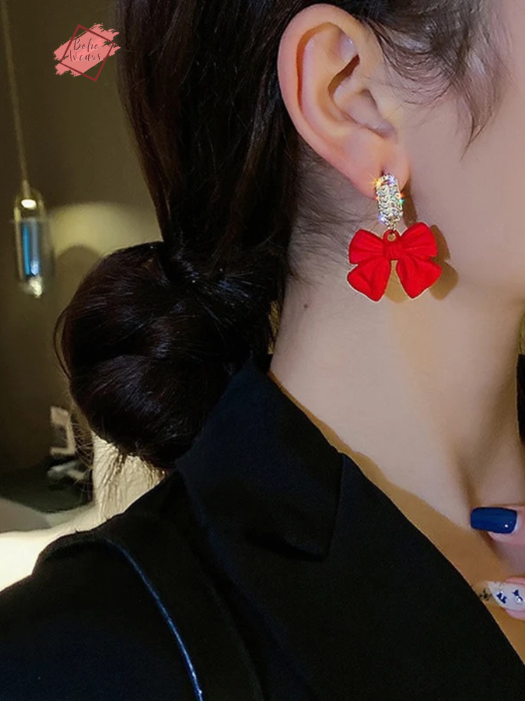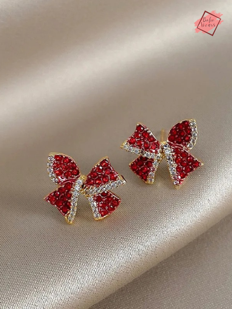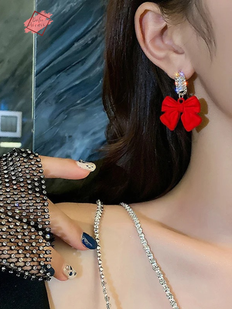 <p>Make a statement at your next holiday event with our striking crystal bow-knot dangle earrings. Set in a brilliant red heart zircon, these earrings are the epitome of Christmas cheer and style.</p>