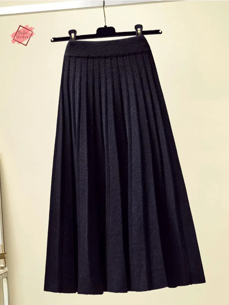 Trendy High Waist Midi-Length Pleated Skirt for Autumn/Winter - Korean Fashion