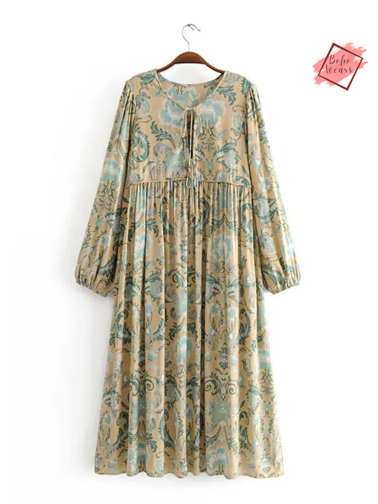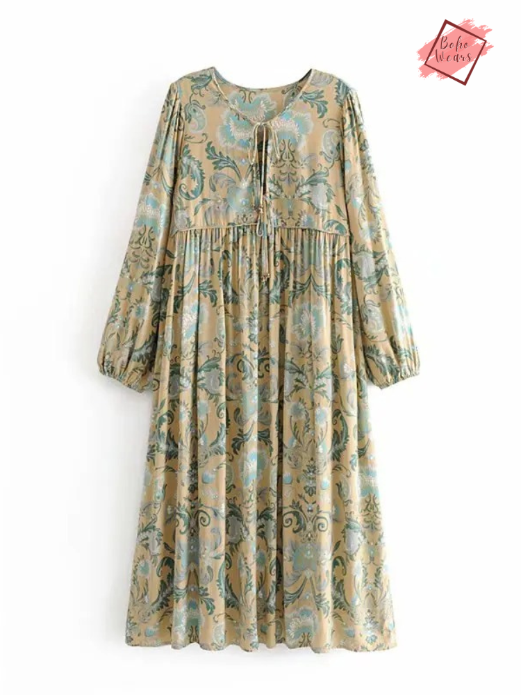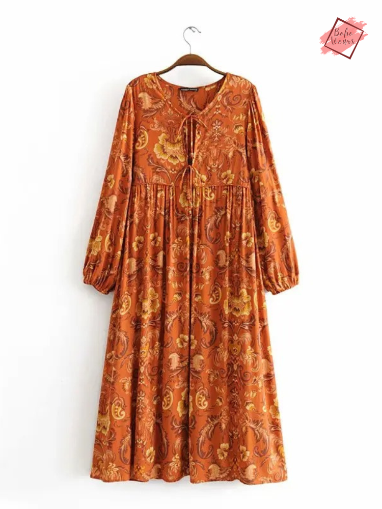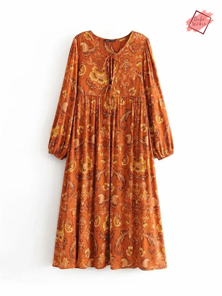 A Bohemian Style Midi Dress that perfectly captures the essence of spring with its unique design and comfortable fit.