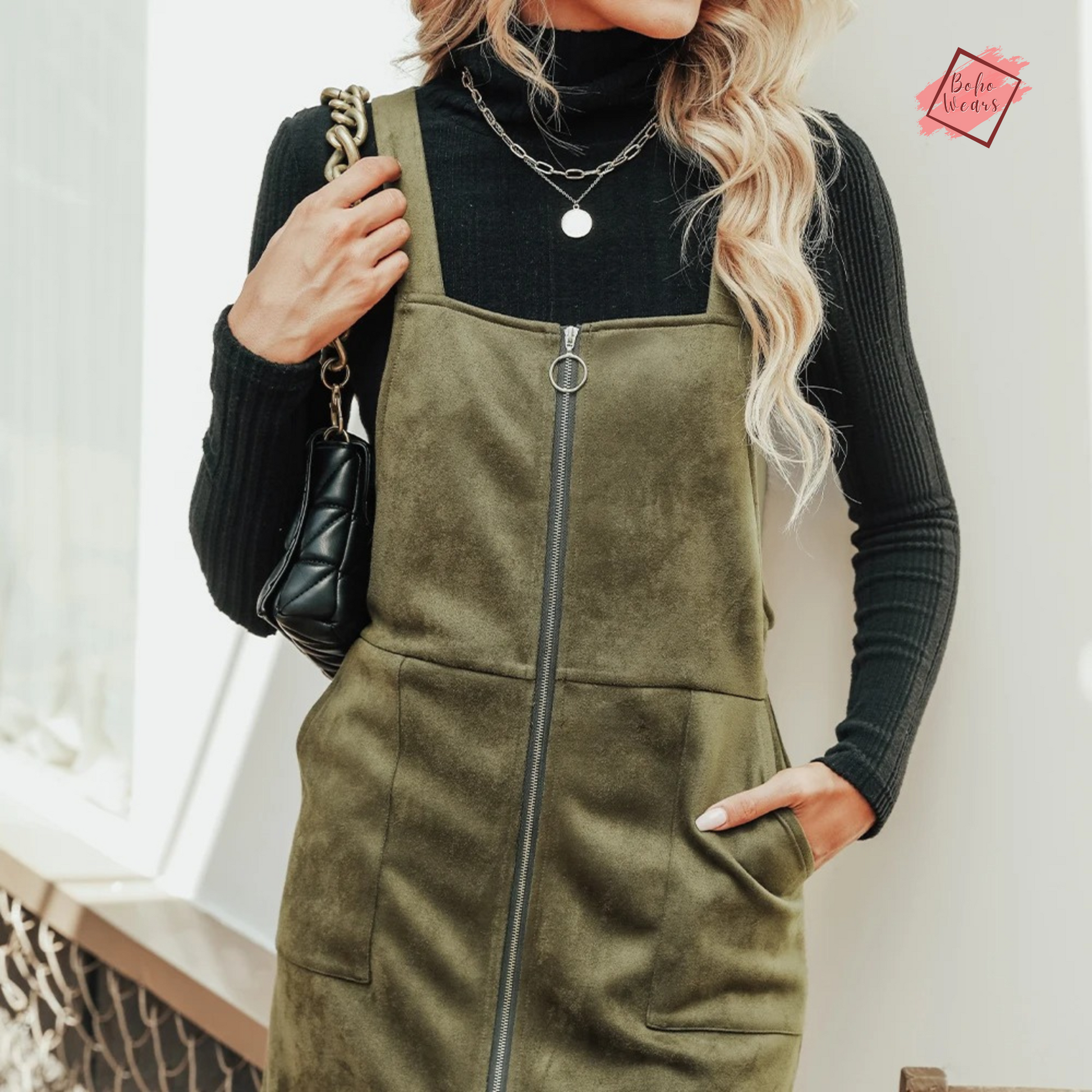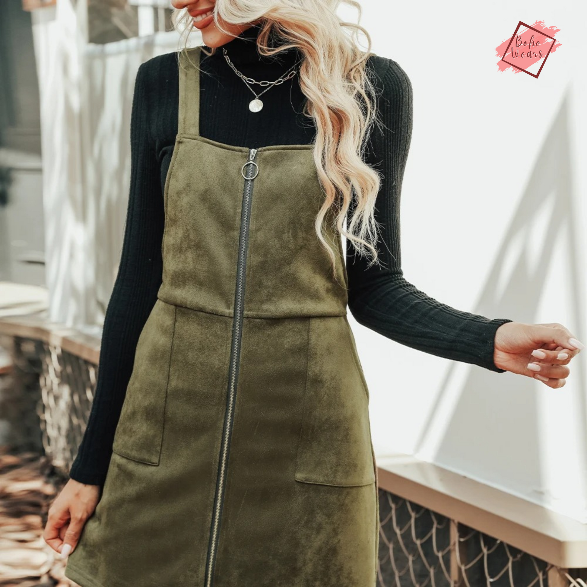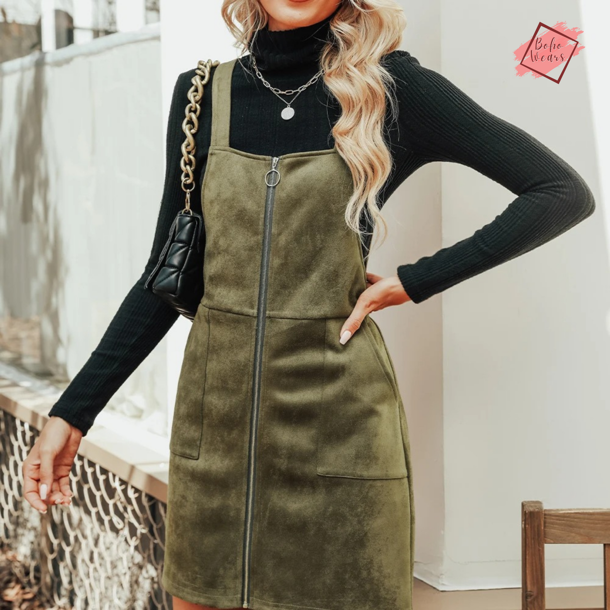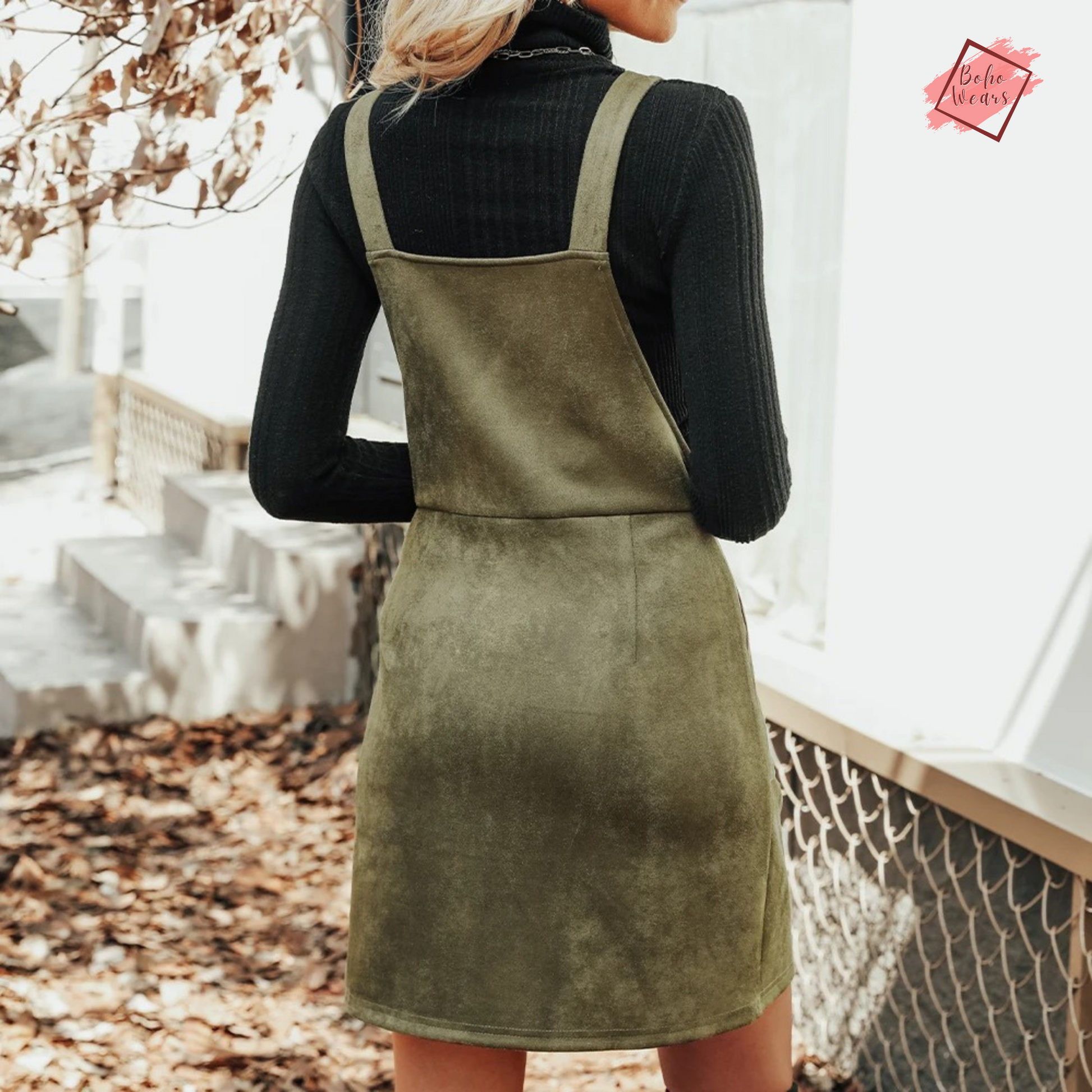 This pinafore dress from BohoWears is not just an outfit; it's a statement of style and sophistication. Whether you're heading to a casual outing, a night out, or a special event, this faux suede mini dress is an excellent choice for women who value fashion, comfort, and versatility in their wardrobe.