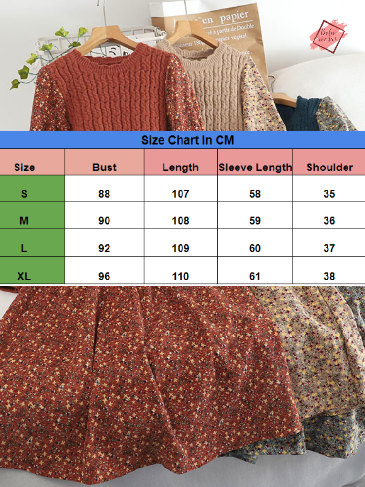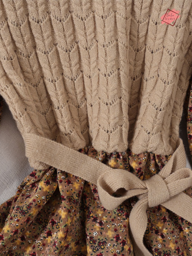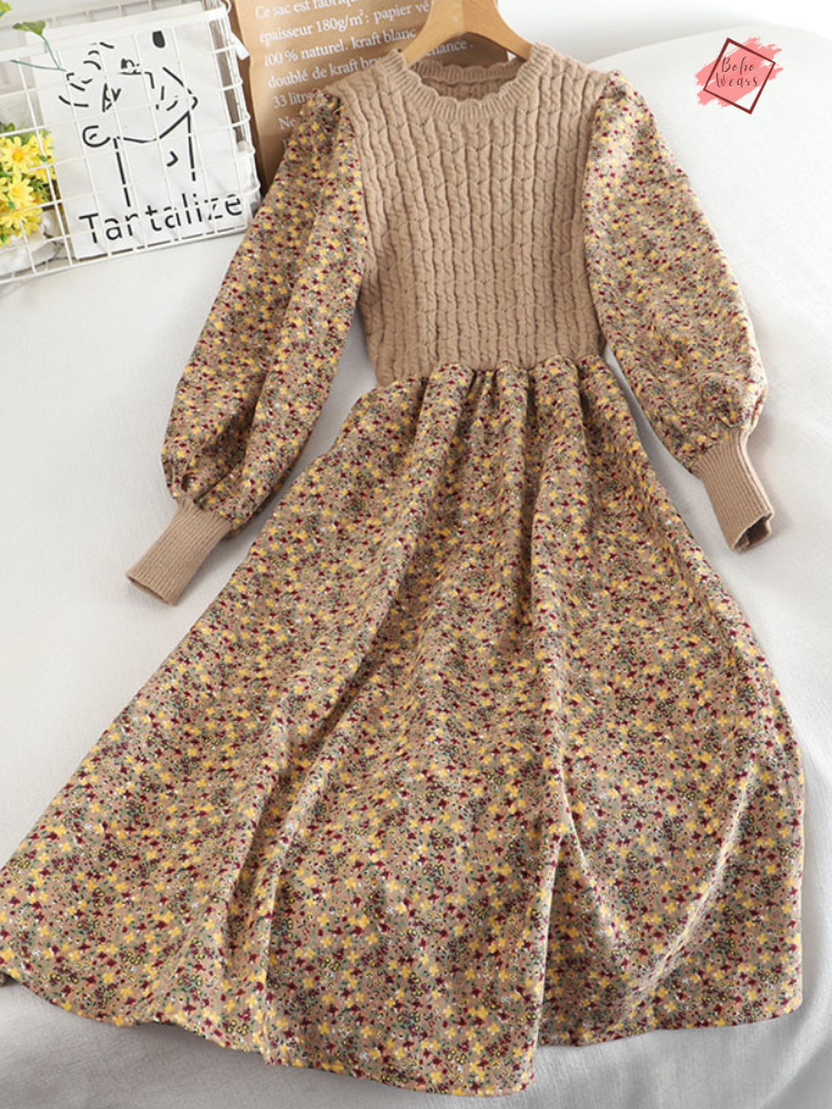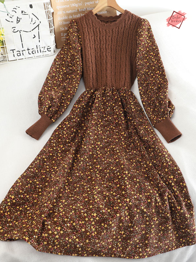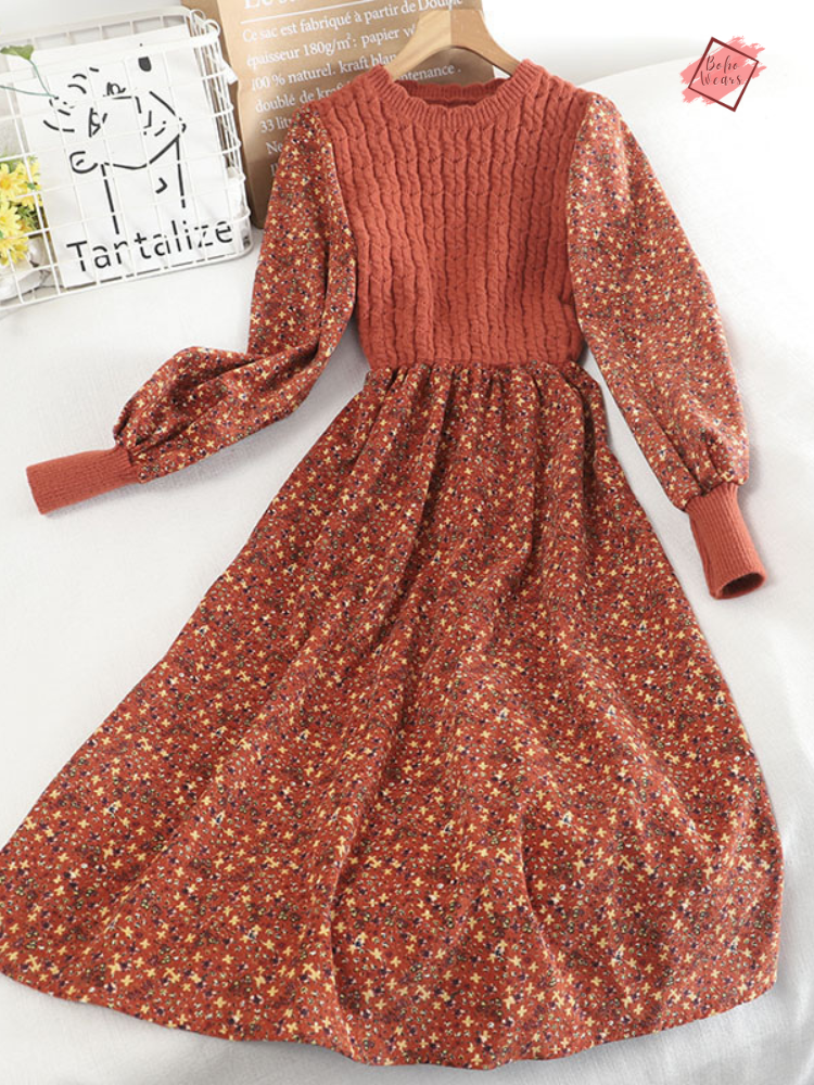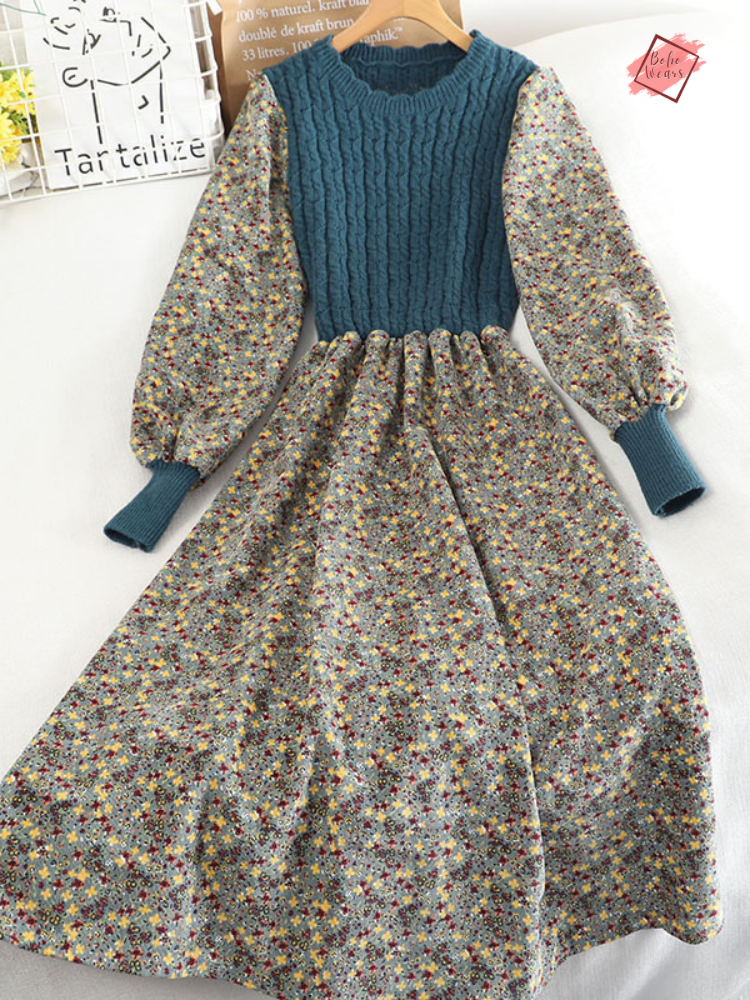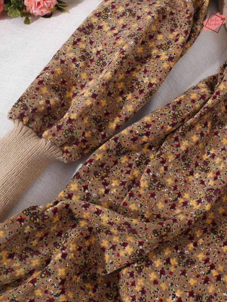 Elevate Your Autumn-Winter Wardrobe with Our Floral Corduroy Knitted Dress!