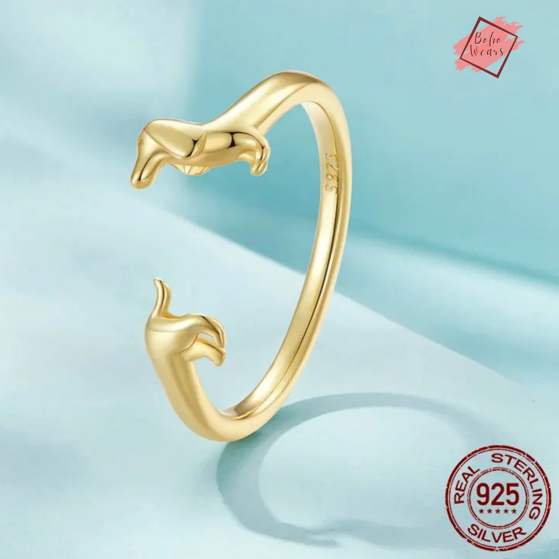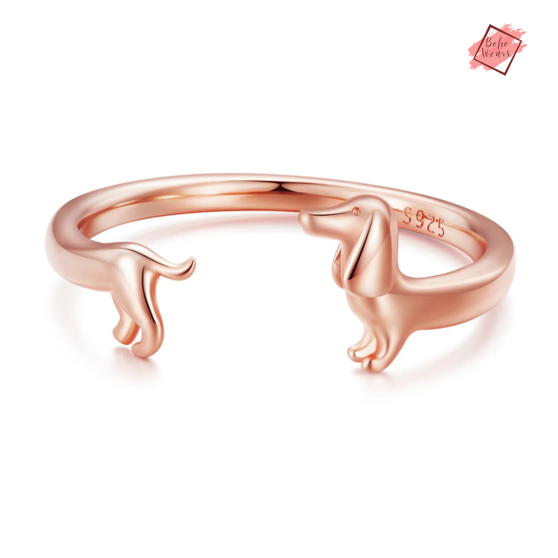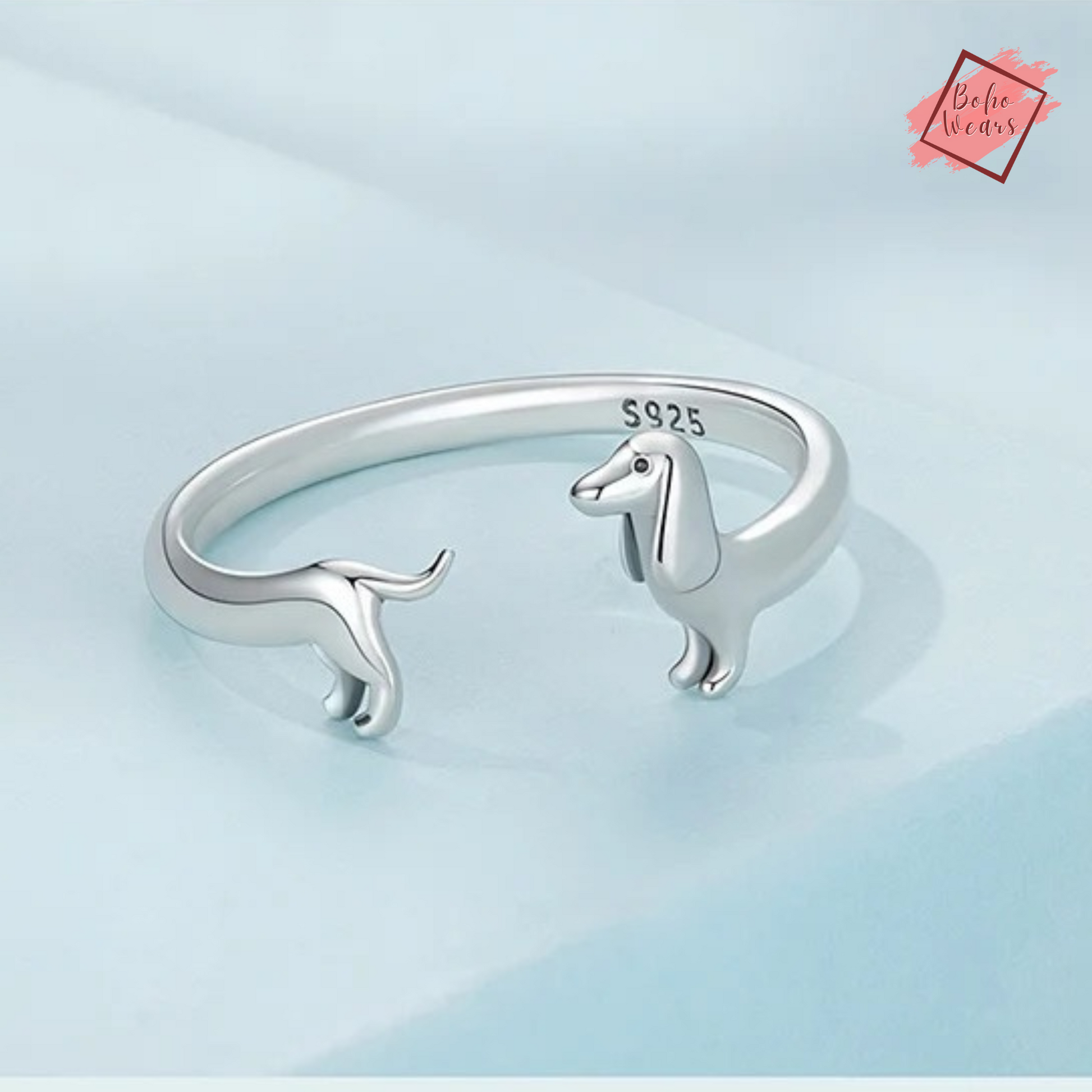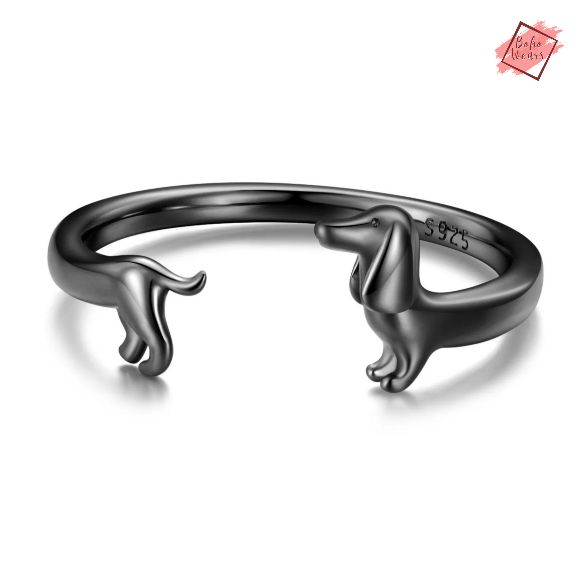 925 Sterling Silver Adjustable Rings: Adorable Dachshund Dog Design for Women