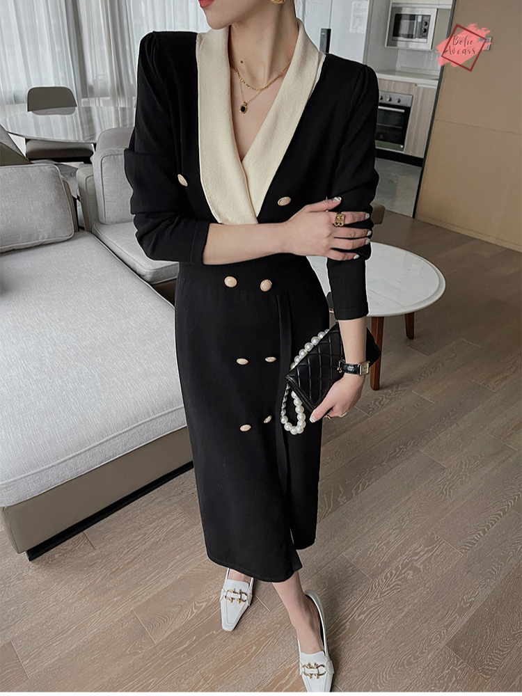 Command attention at your next formal event in the elegant long sleeve V-neck maxi dress from Boho Wears. This stunning knit evening gown flatters the figure with its slim-fitting silhouette and V-neckline accentuated with decorative buttons.