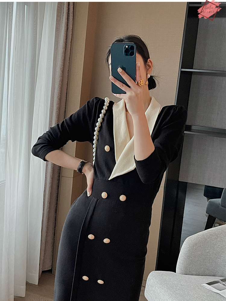 Crafted from a soft, stretchy cotton knit fabric, this dress balances comfort and style. The midi length flatters a variety of heights while the long sleeves and high neckline provide versatile coverage for autumn and winter wear. The rich solid colors like wine red, navy, black, and forest green lend sophistication, perfect for both office and evening affairs.