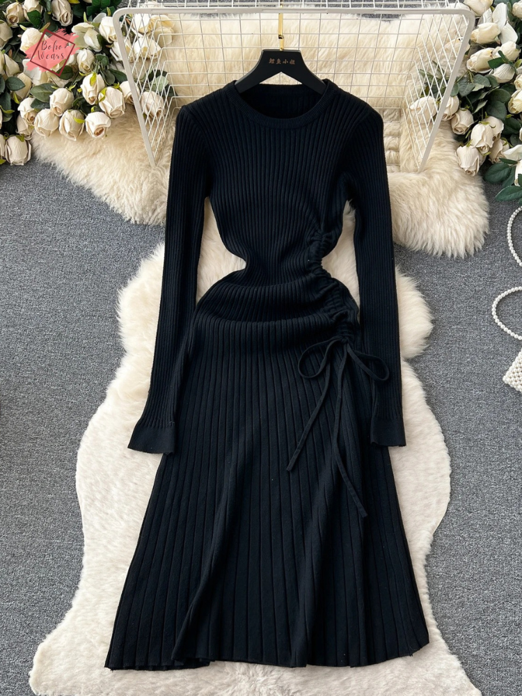 Embrace the cooler seasons in style with the Elegant A-Line Knitted Dress from BohoWears. Designed for the modern woman, this dress is a blend of comfort and elegance, perfect for any occasion.