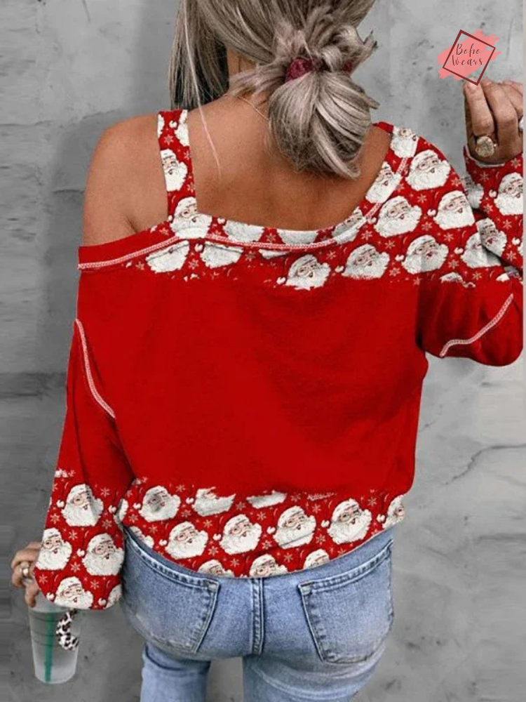 Embrace the joy of the holiday season with our cozy and chic Santa Claus graphic t-shirt. This loose, long-sleeved tee combines comfort with festive flair, making it a must-have for your winter wardrobe.