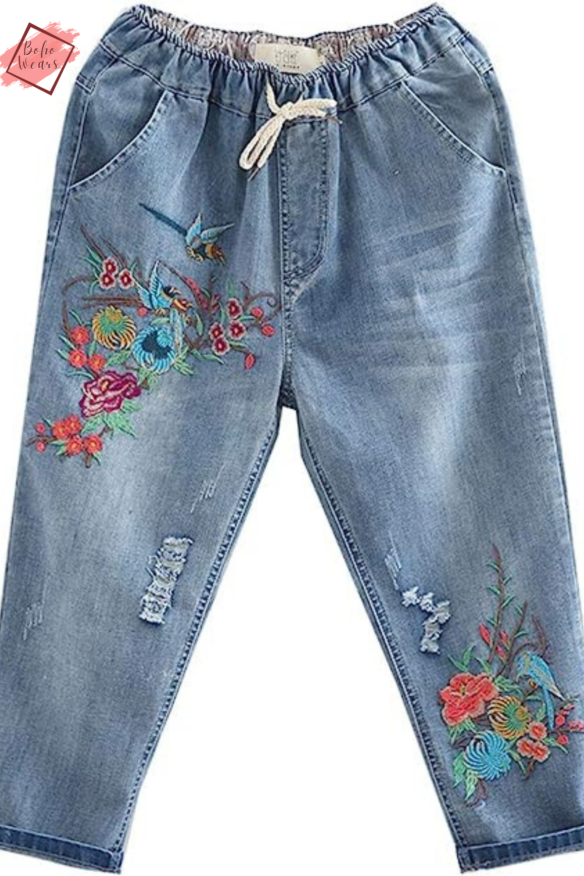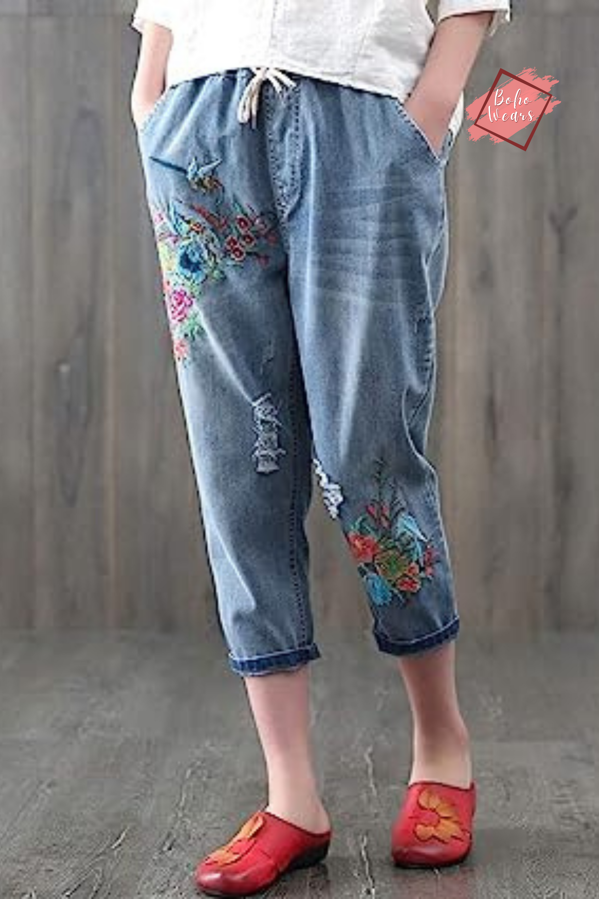 Embrace the bohemian spirit with our High Waist Baggy Jeans for women. A seamless blend of comfort and style, these jeans are the ultimate wardrobe essential for any modern woman who values individuality and chic versatility. Crafted from premium denim, these trousers showcase stunning embroidery that adds an artistic touch to your everyday outfit.