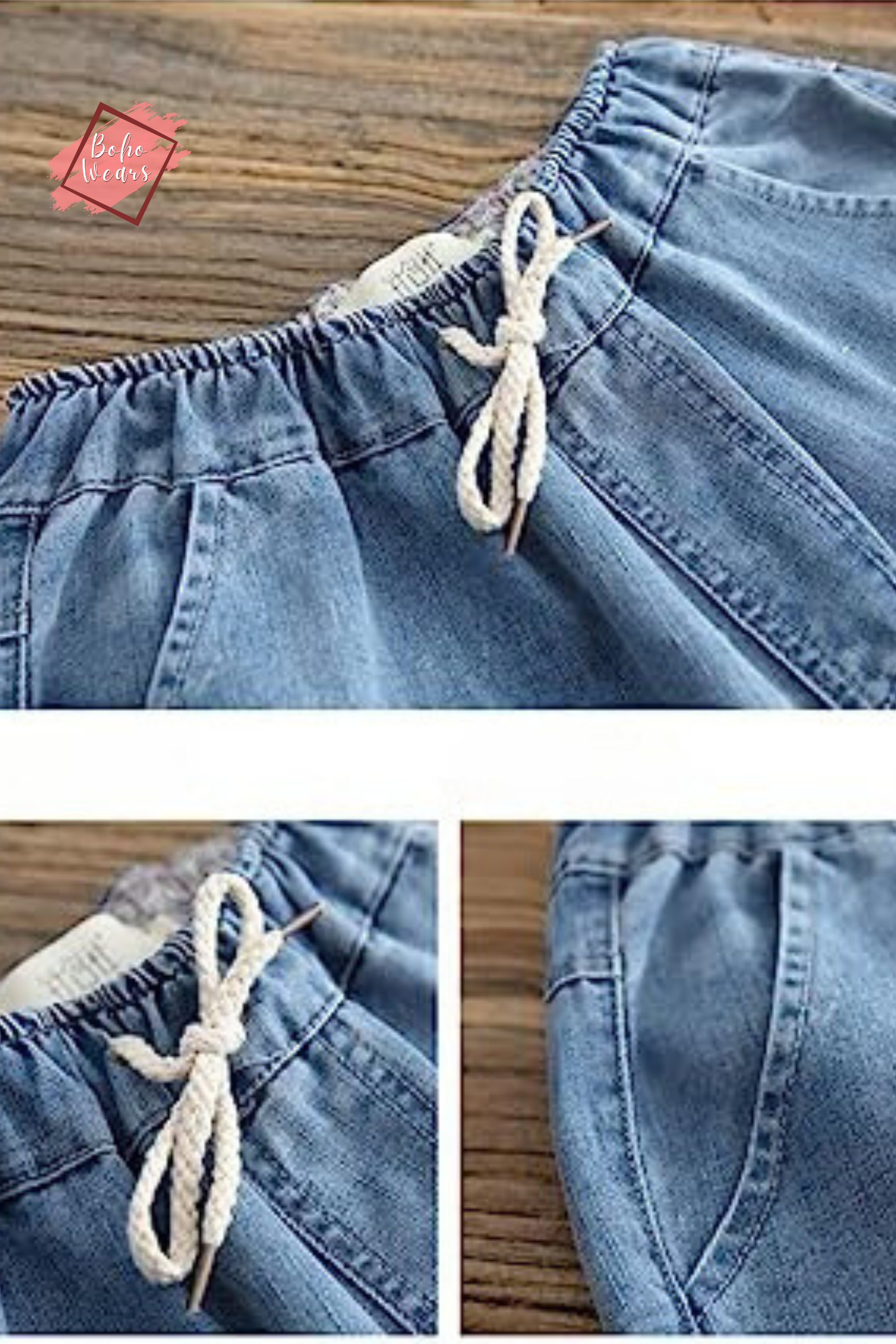 With a high waist and an elastic band, these jeans offer a snug and comfortable fit. The loose, ankle-length harem style makes it a versatile piece that pairs well with a wide range of tops, from casual tees to elegant blouses. Whether you're stepping out for a laid-back day in the city or planning a night out with friends, these jeans guarantee to keep you comfortable and stylish.