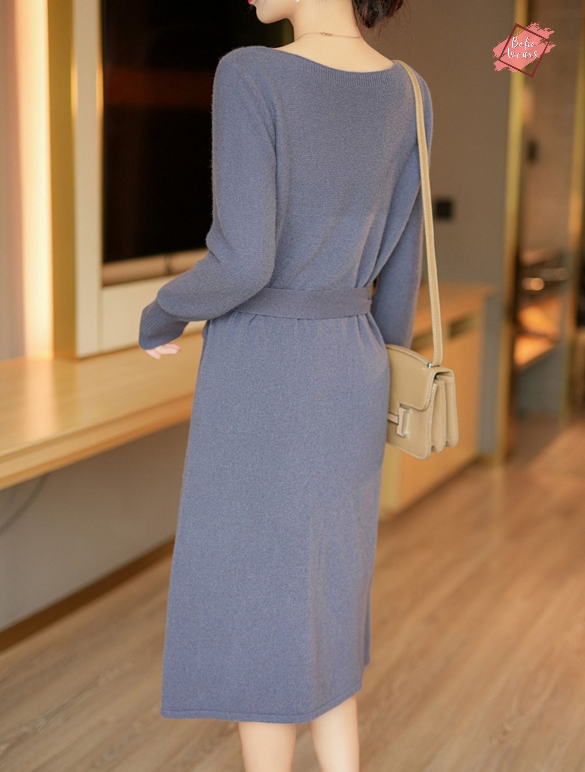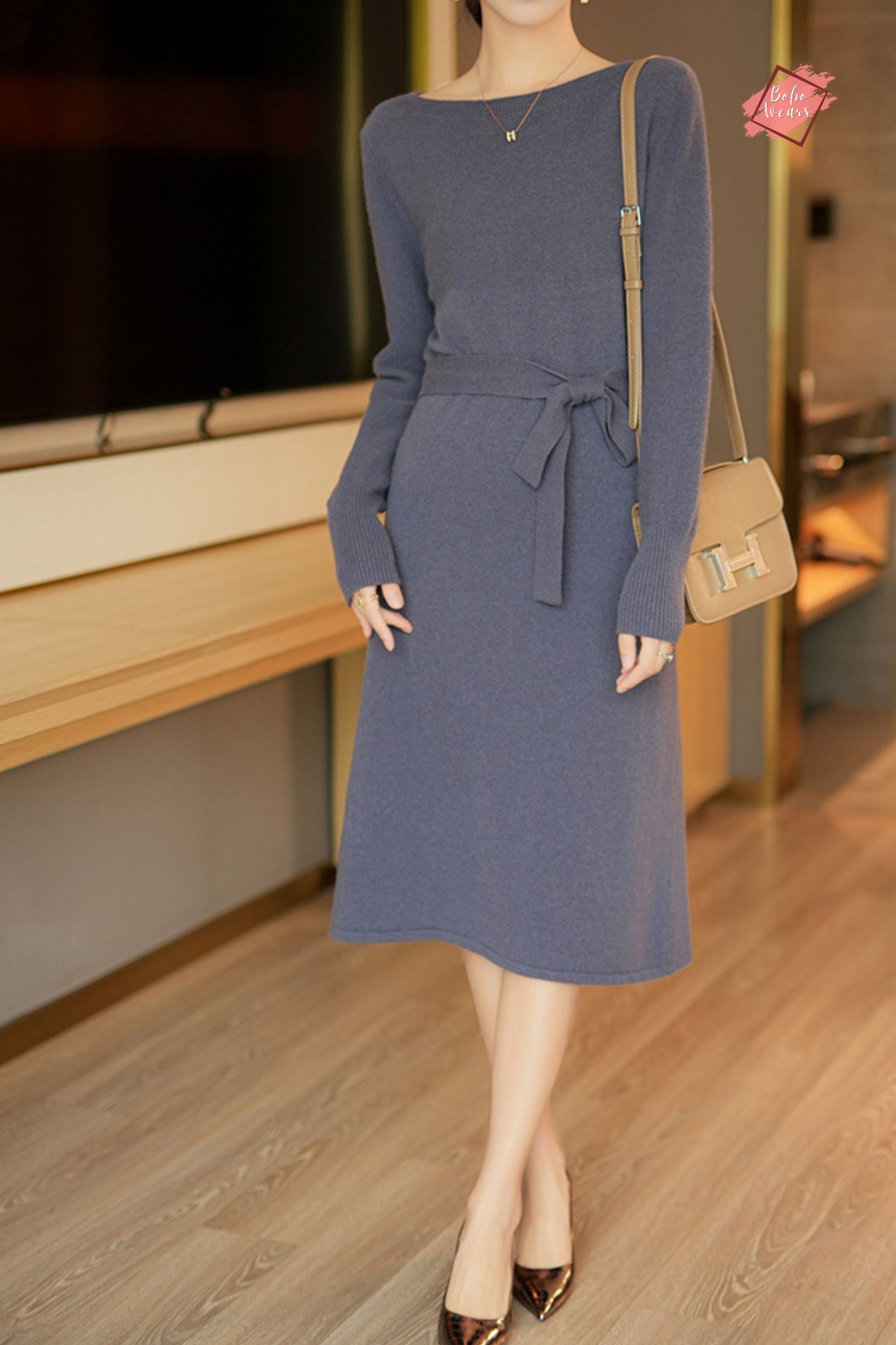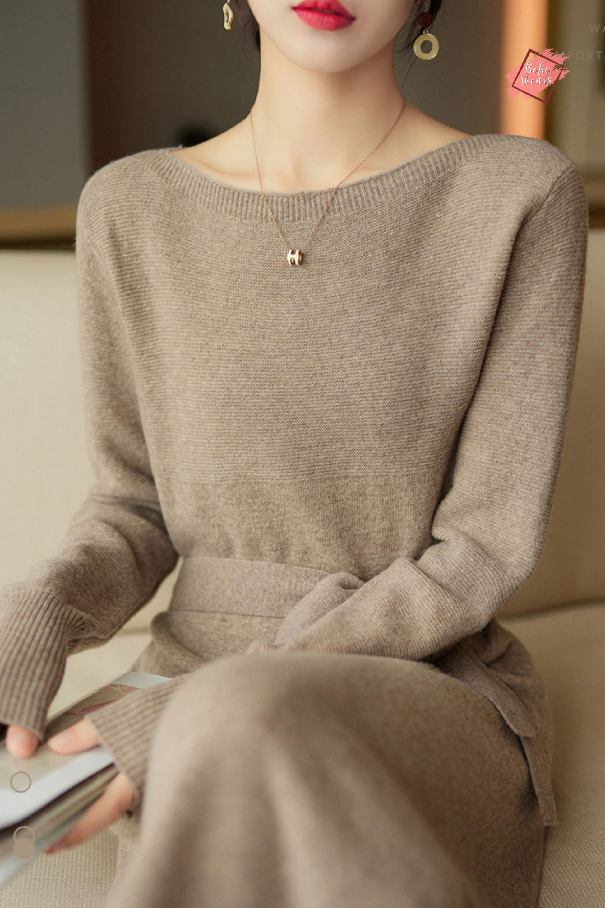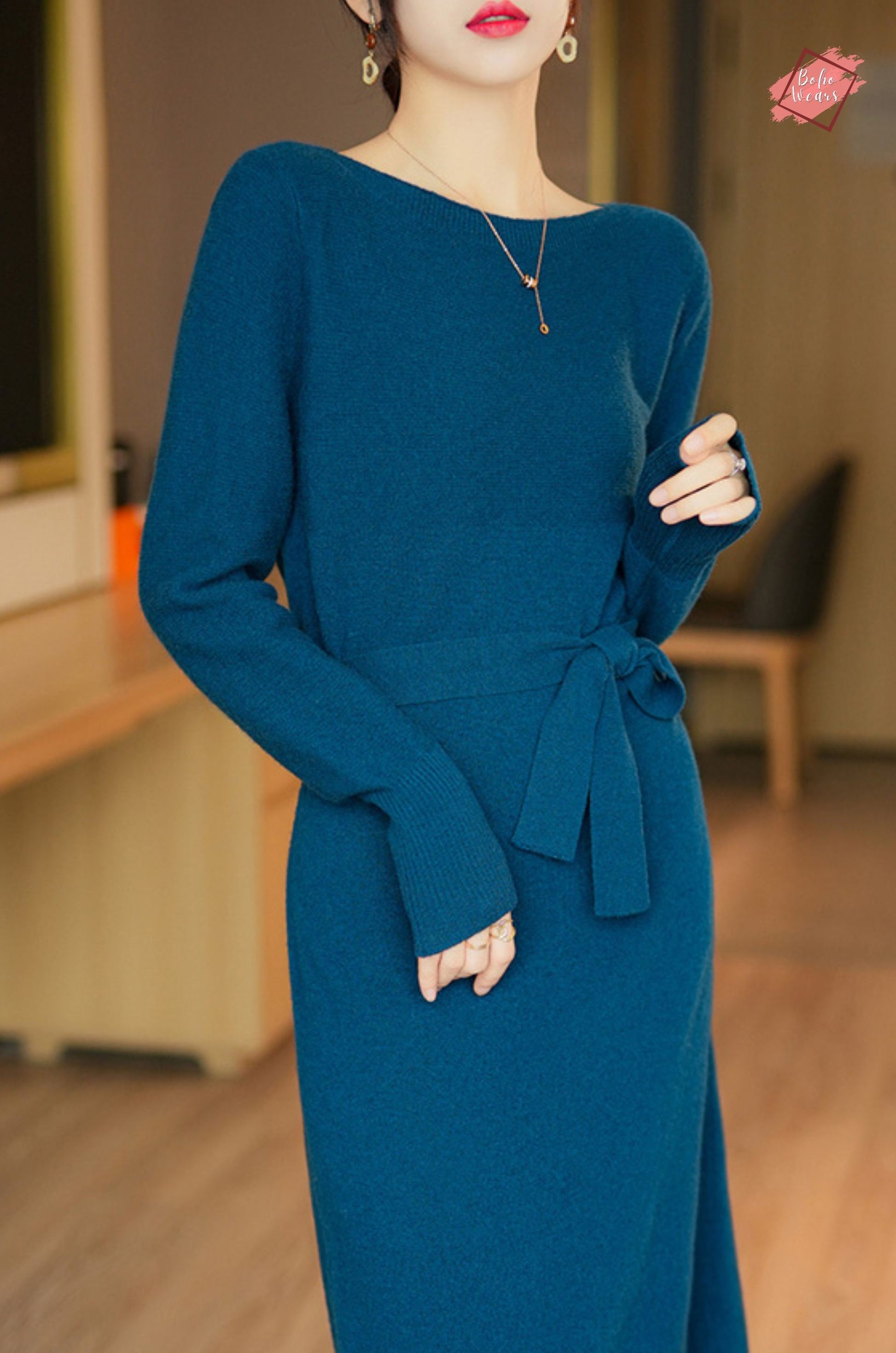 Chic Comfort: Long Cashmere Sweater Dresses with Belt - A Must-Have for Women