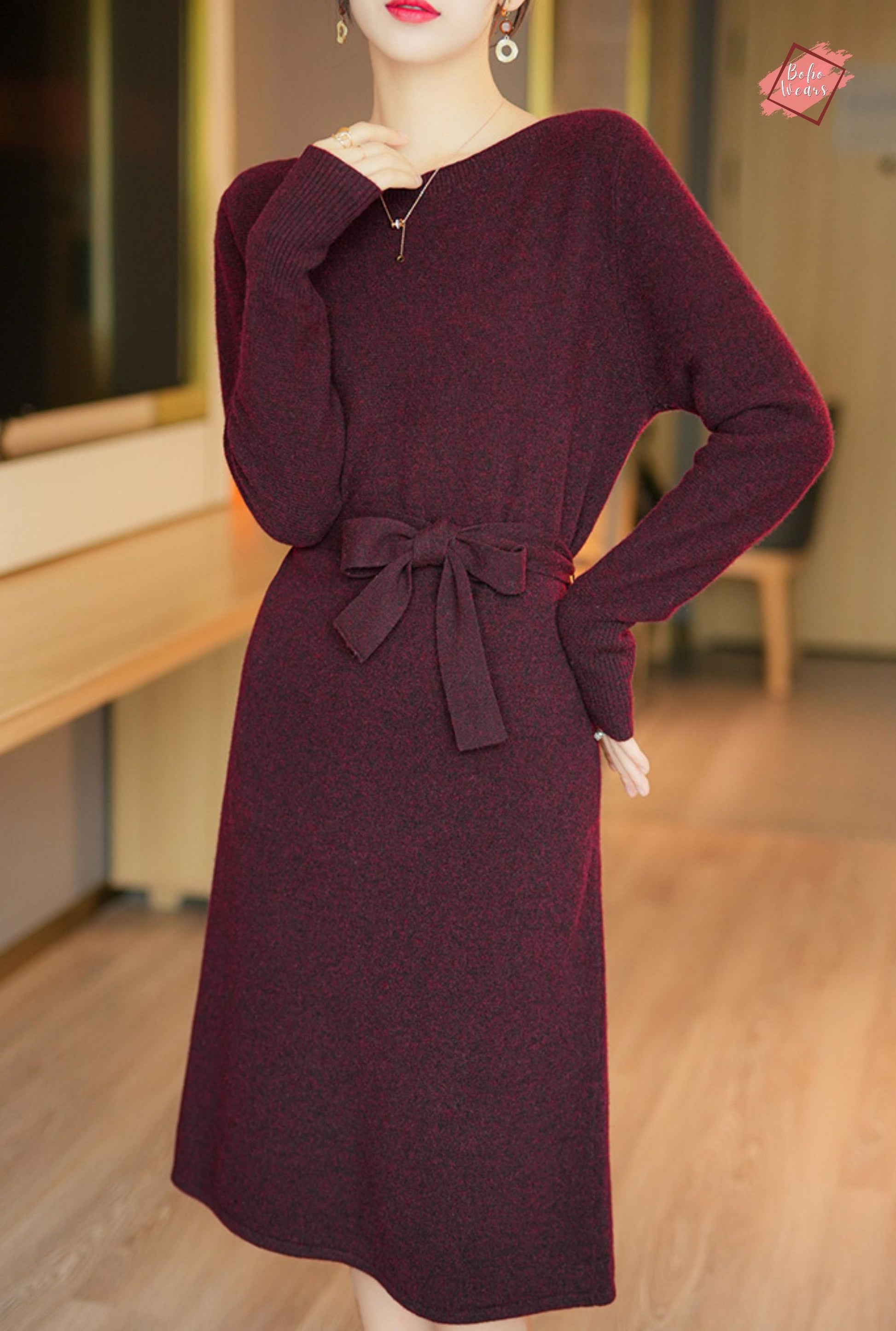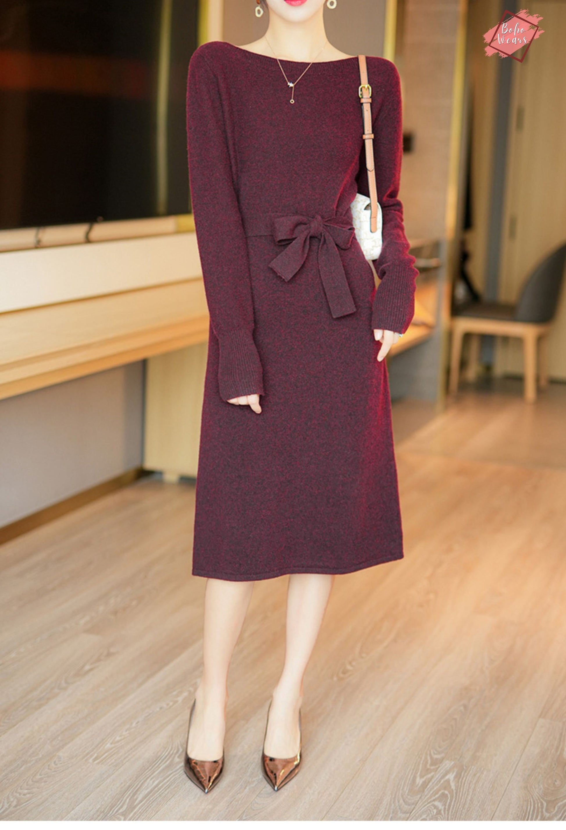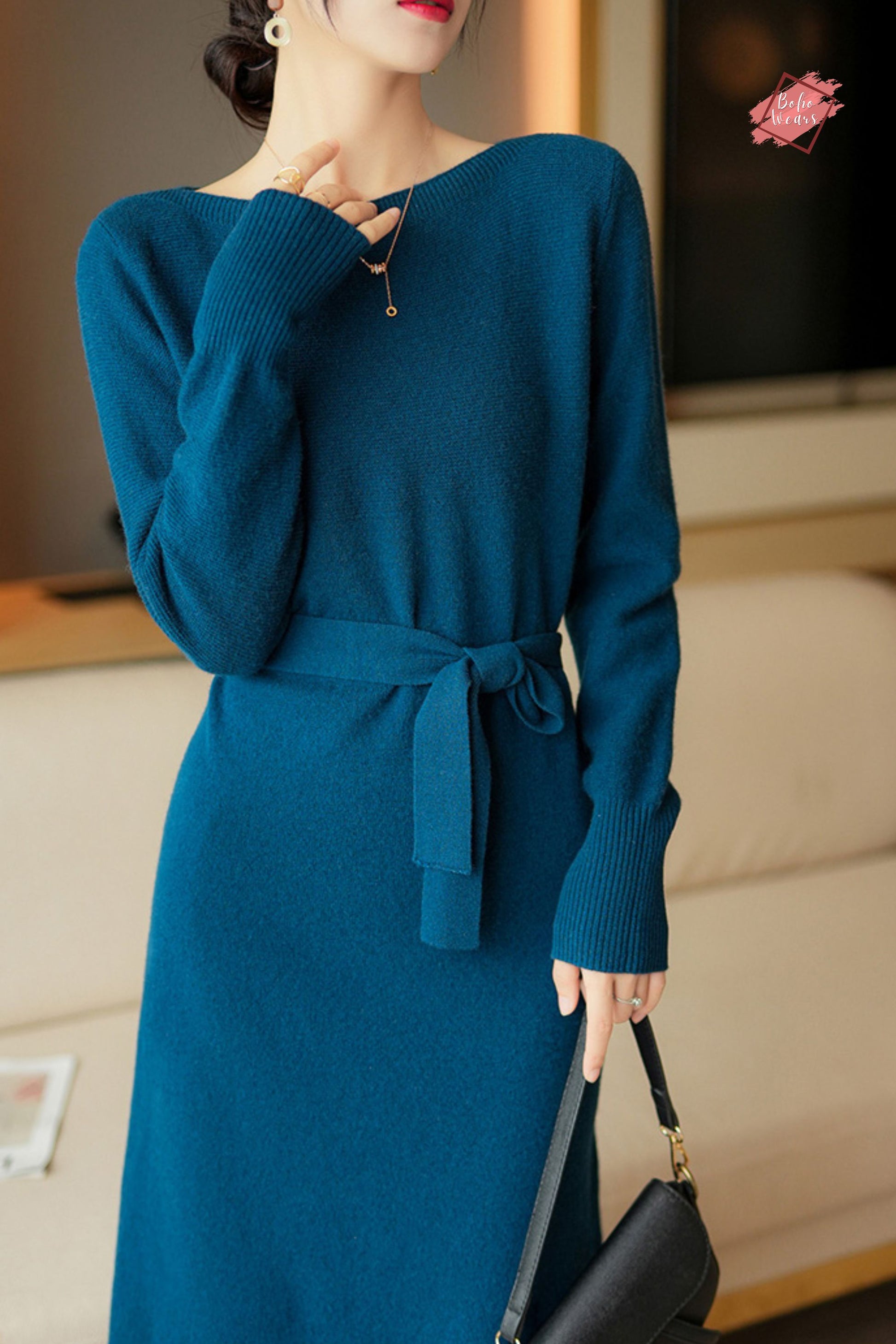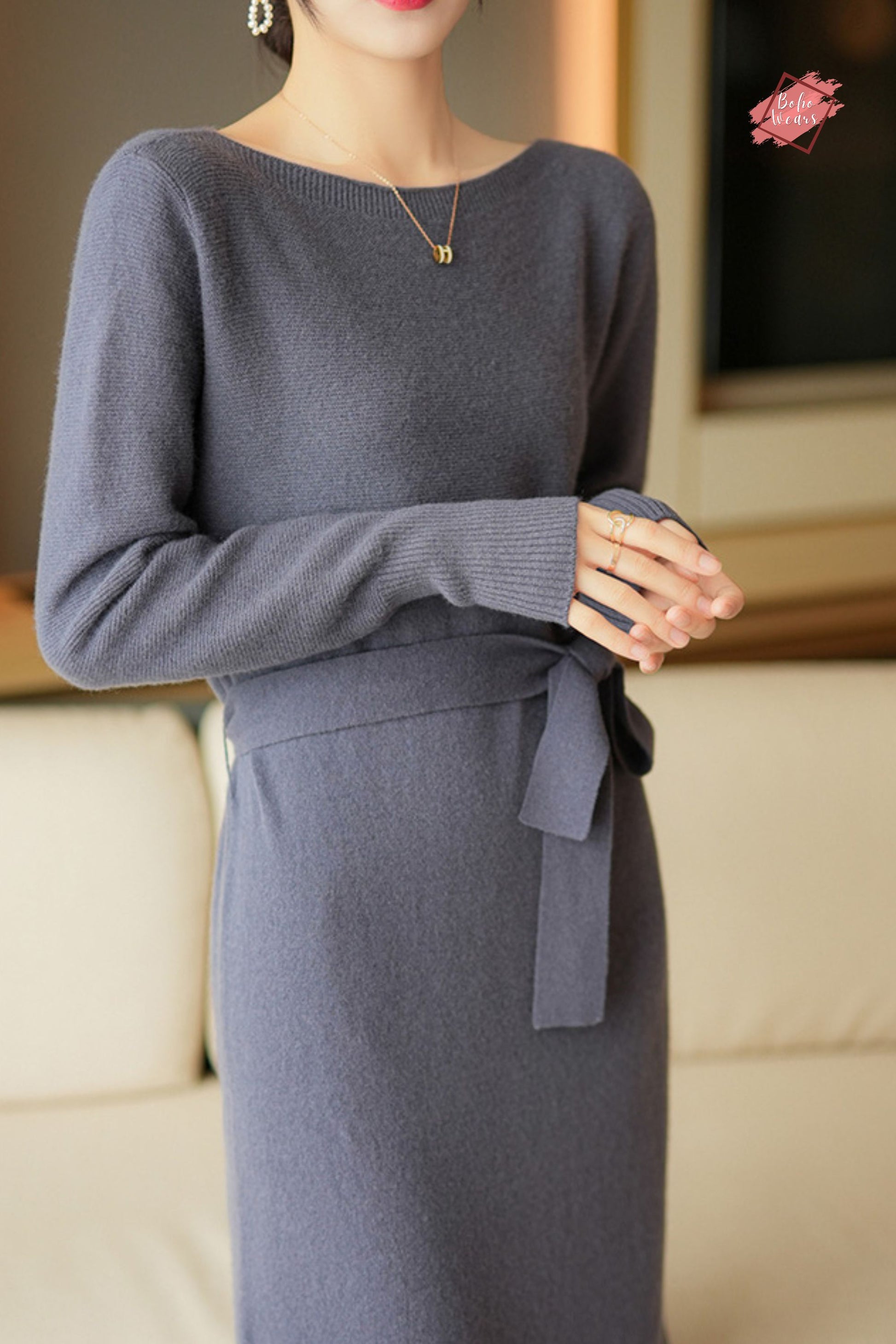 Chic Comfort: Long Cashmere Sweater Dresses with Belt - A Must-Have for Women