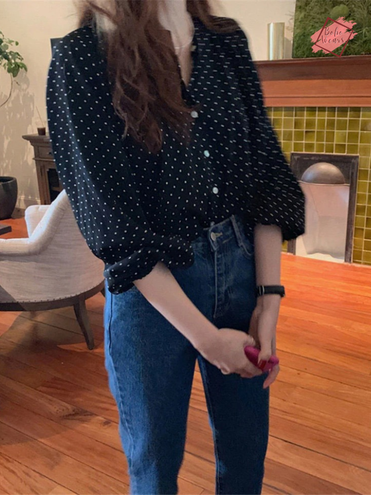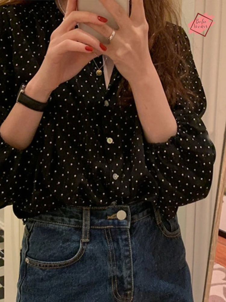 Chic Office Lady Oversized Dot Blouses - Korean Style Spring/Summer Tops