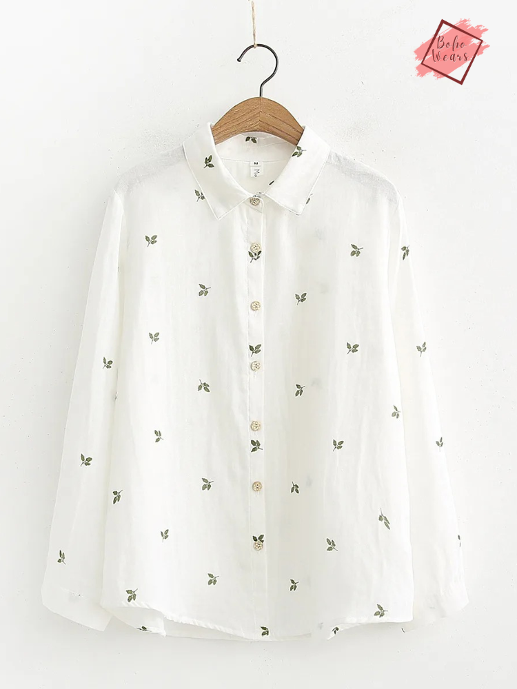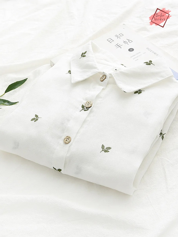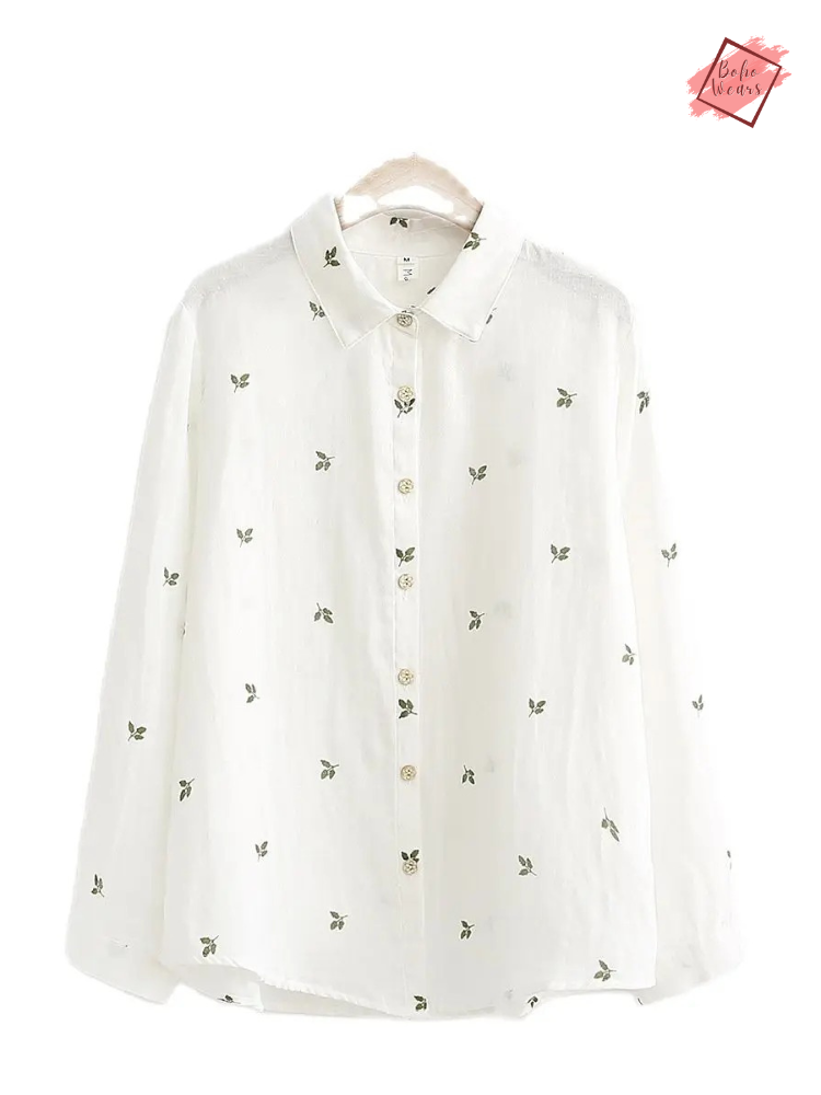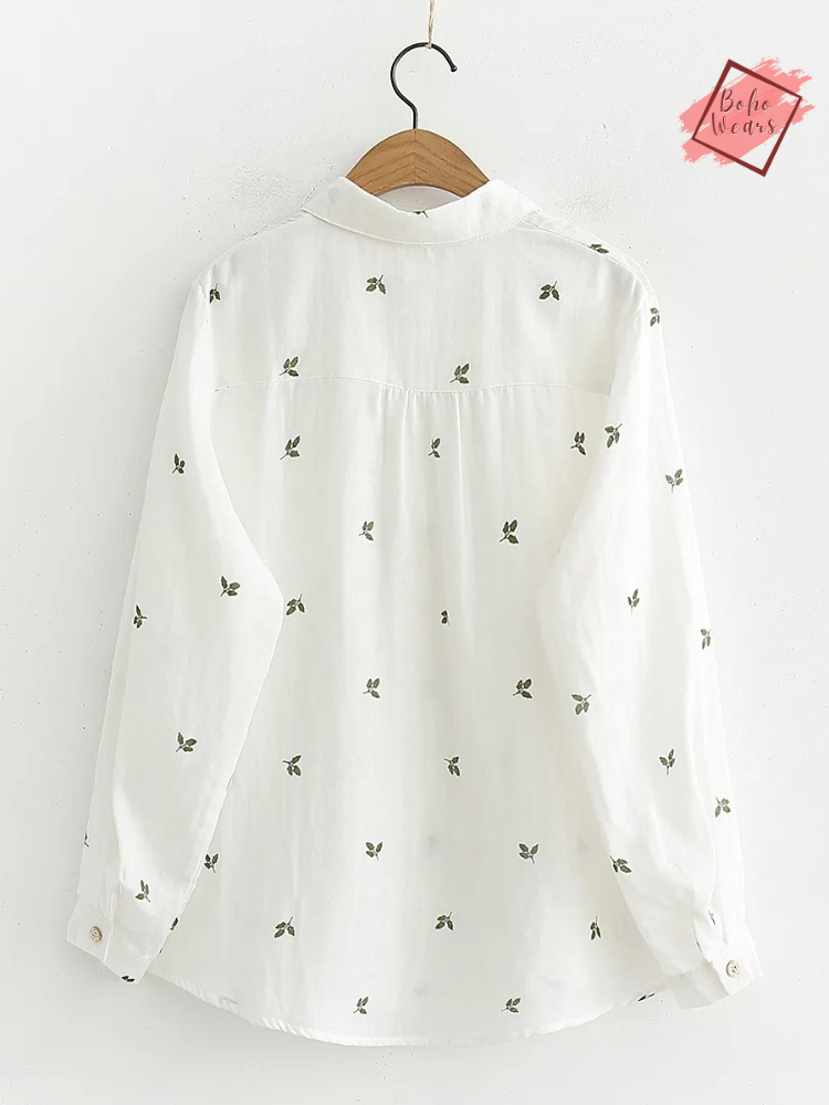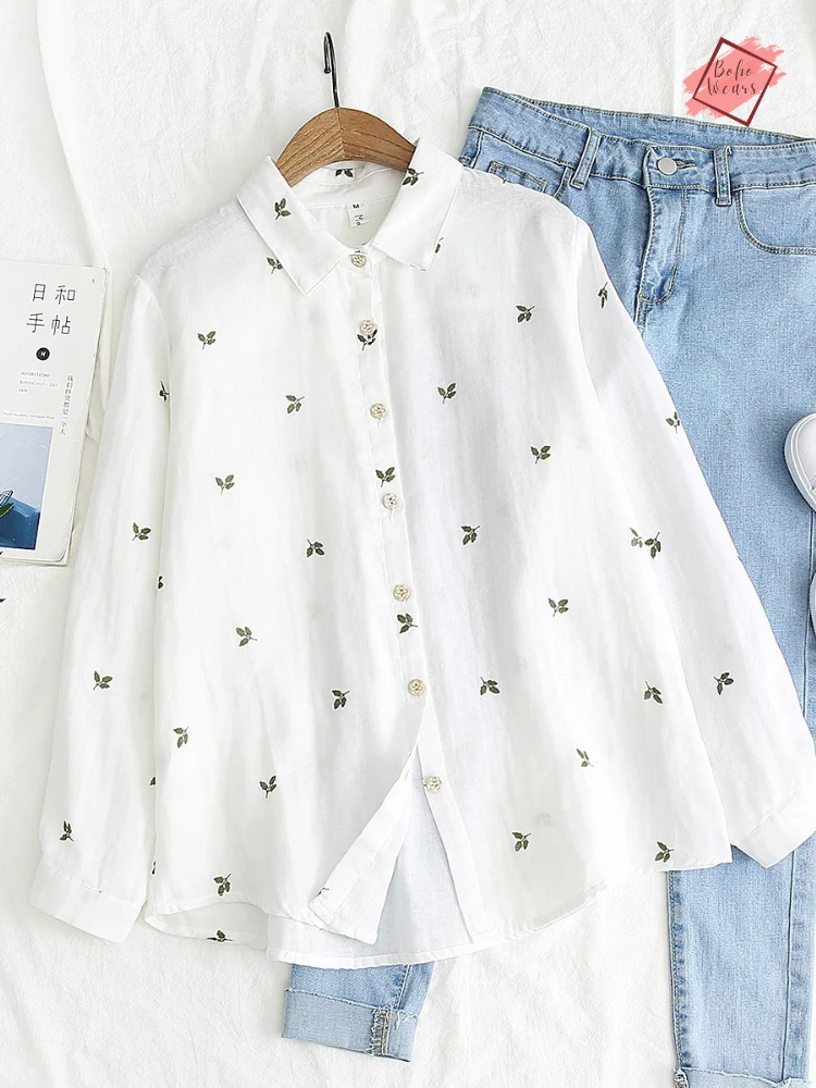 Cotton Embroidered Long Sleeve Shirts: Women's Versatile Spring/Fall Wardrobe Essential