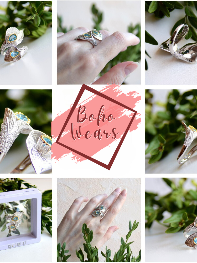 Discover timeless beauty and exquisite craftsmanship with our handmade sterling silver adjustable ring adorned with a dazzling 1.25-carat natural Swiss Blue Topaz. Designed exclusively for women, this elegant piece is a statement of sophistication, available now at BohoWears.com.