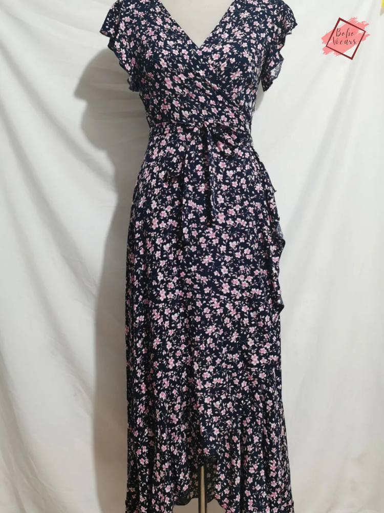 Embrace the summer breeze in our Elegant Floral Long Dress. Designed for the stylish and free-spirited woman, this dress features a vibrant floral pattern, creating a look that's both casual and chic.
