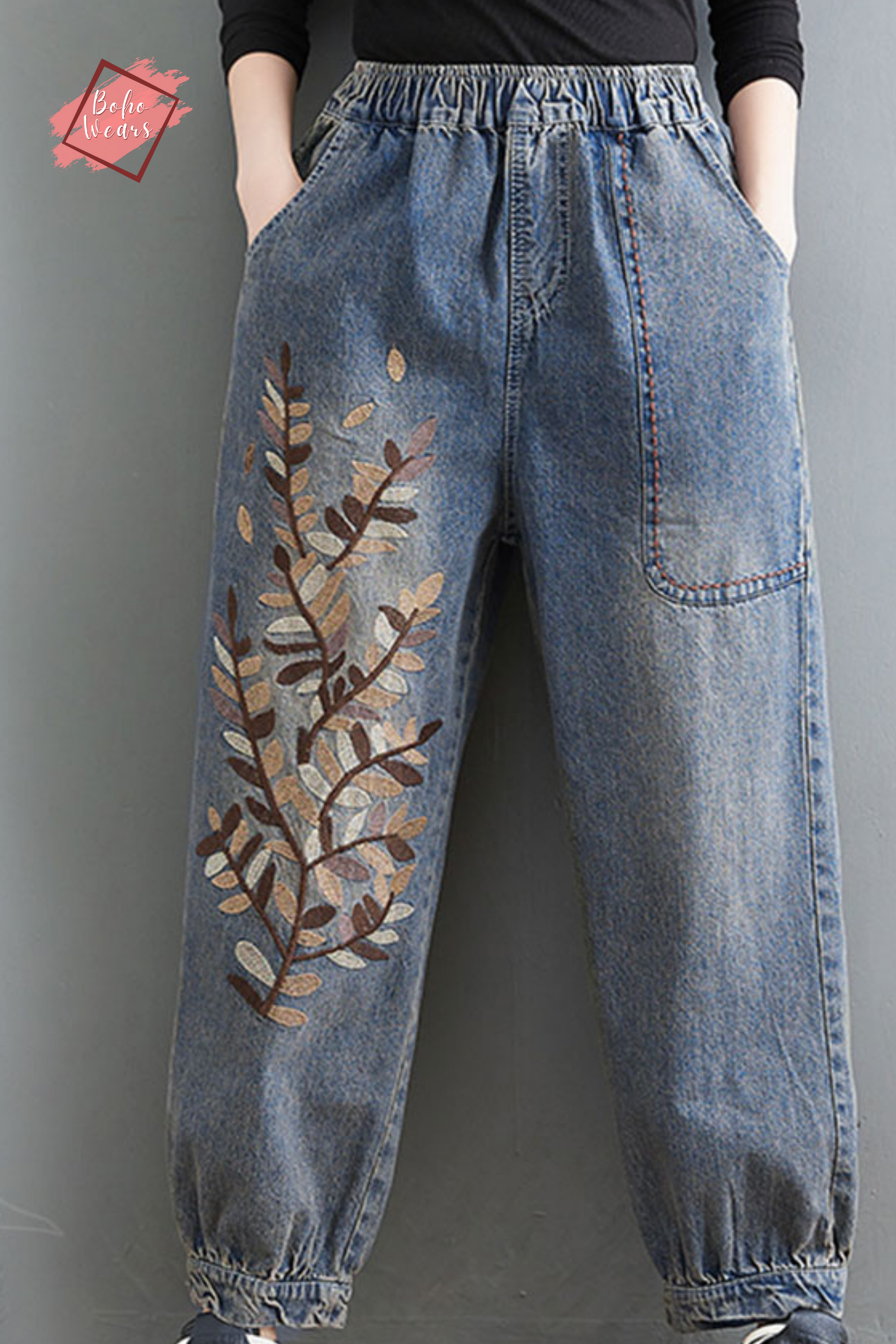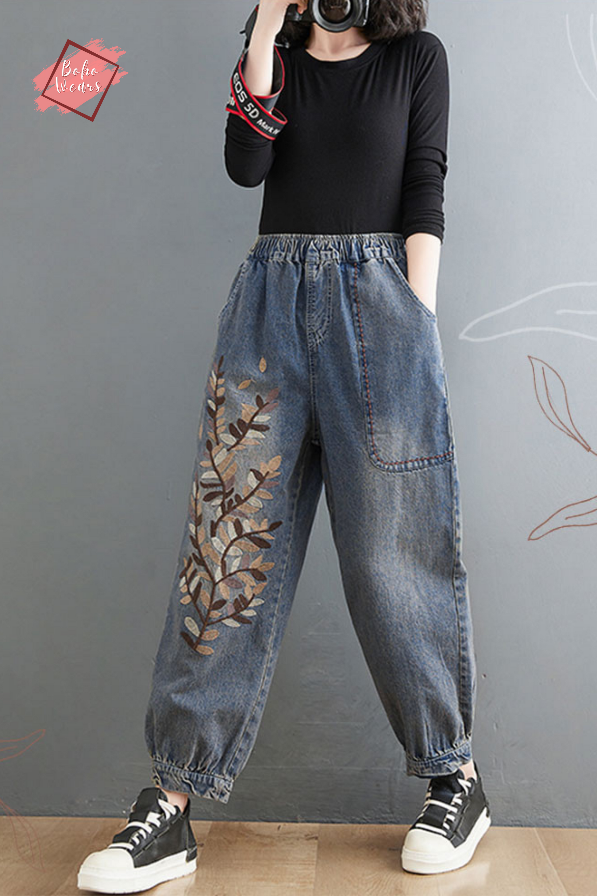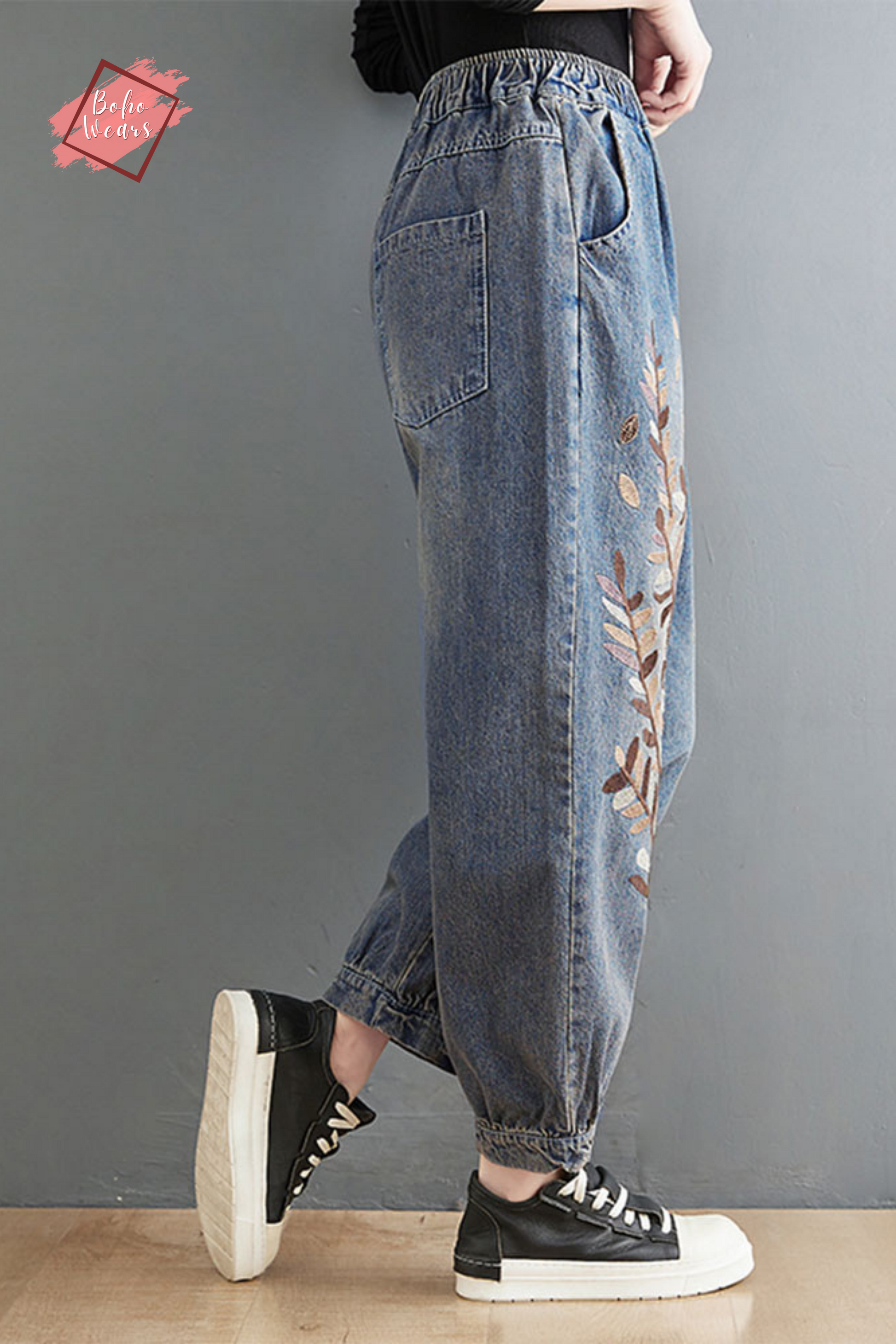 Embroidered Jeans, Women Joggers, Oversized Elastic Waist Pants, Loose Harem Pants, Denim Trousers, Casual Jeans, Plus Size Jean Pants