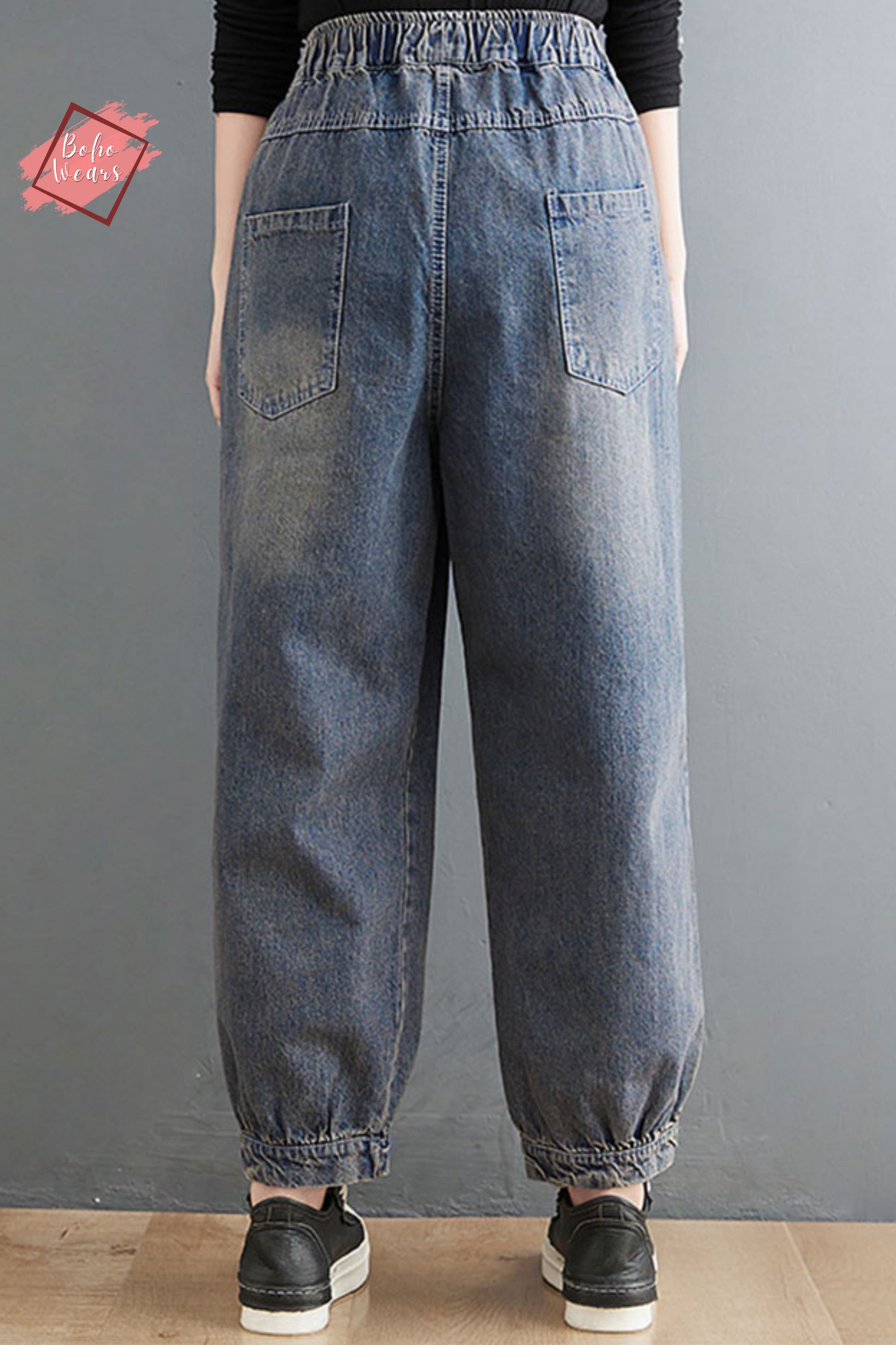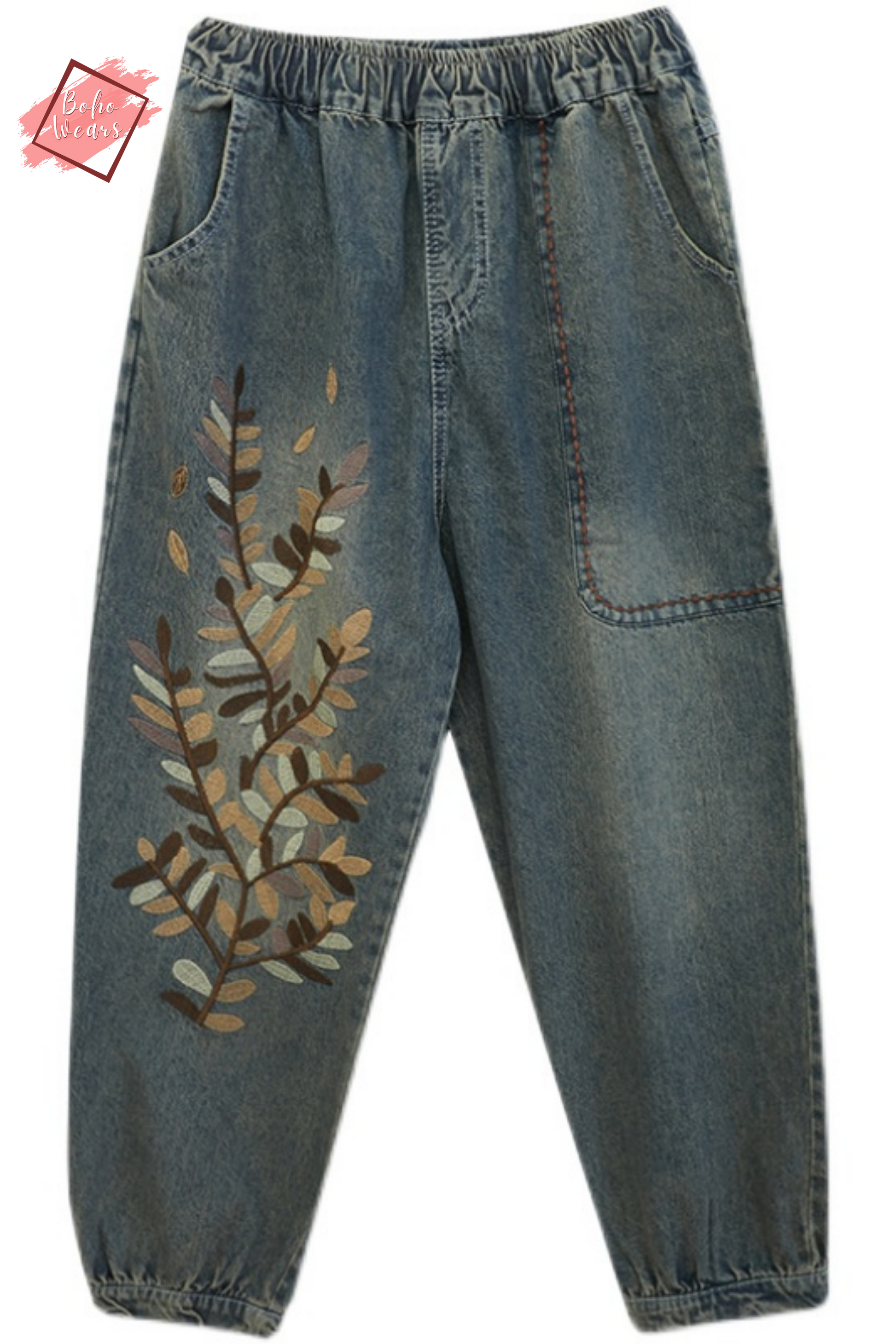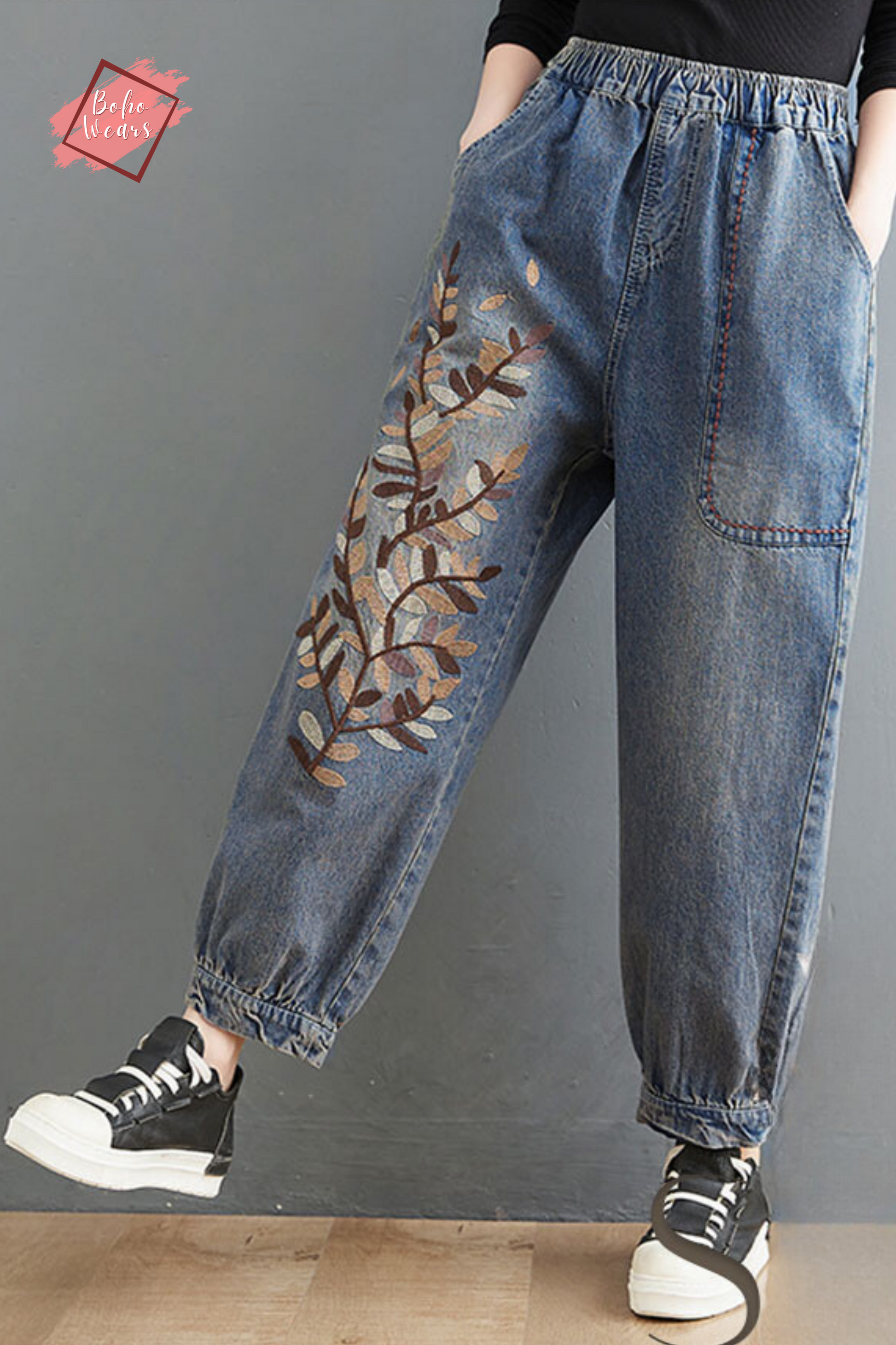 Embroidered Jeans, Women Joggers, Oversized Elastic Waist Pants, Loose Harem Pants, Denim Trousers, Casual Jeans, Plus Size Jean Pants