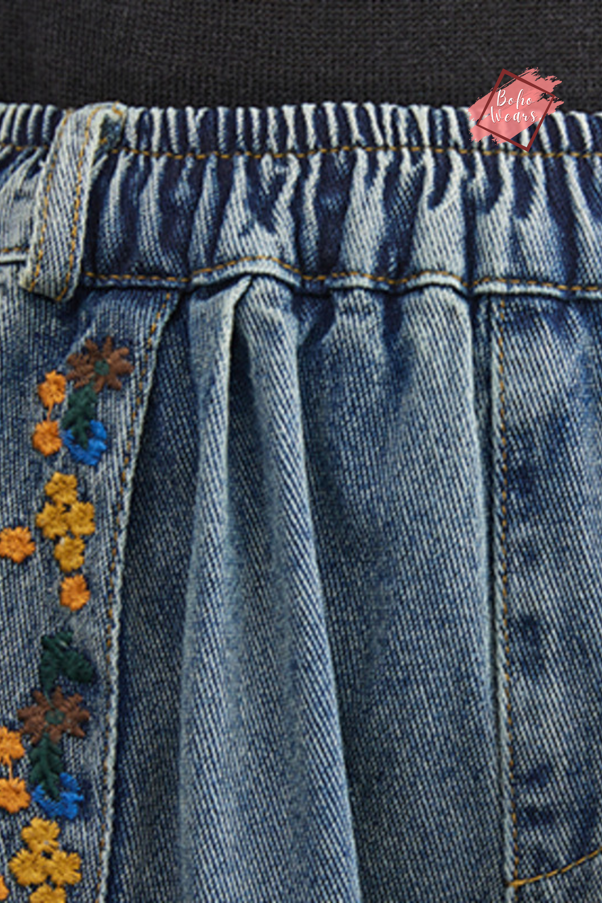 Introducing BohoWears' beautifully crafted Flowers Embroidered Jeans. These casual denim trousers blend literary elegance with a vintage aesthetic, offering an enchanting addition to your wardrobe.