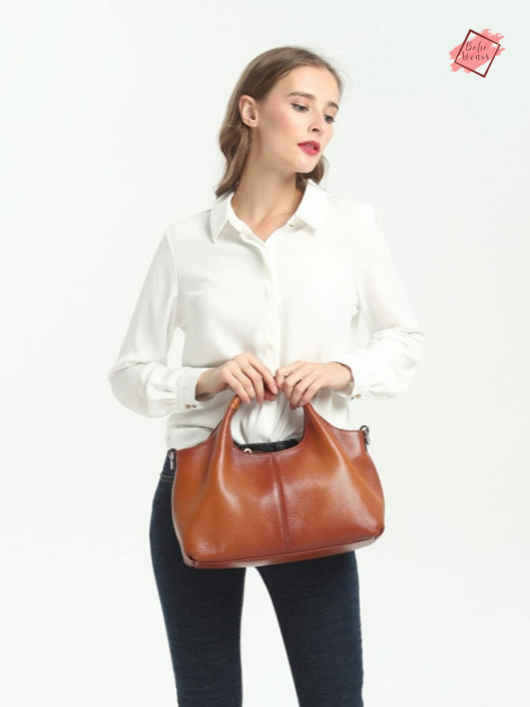 BohoWears Genuine Leather Women's Shoulder Bag - Stylish Top Handle Satchel with Large Capacity and Crossbody Option