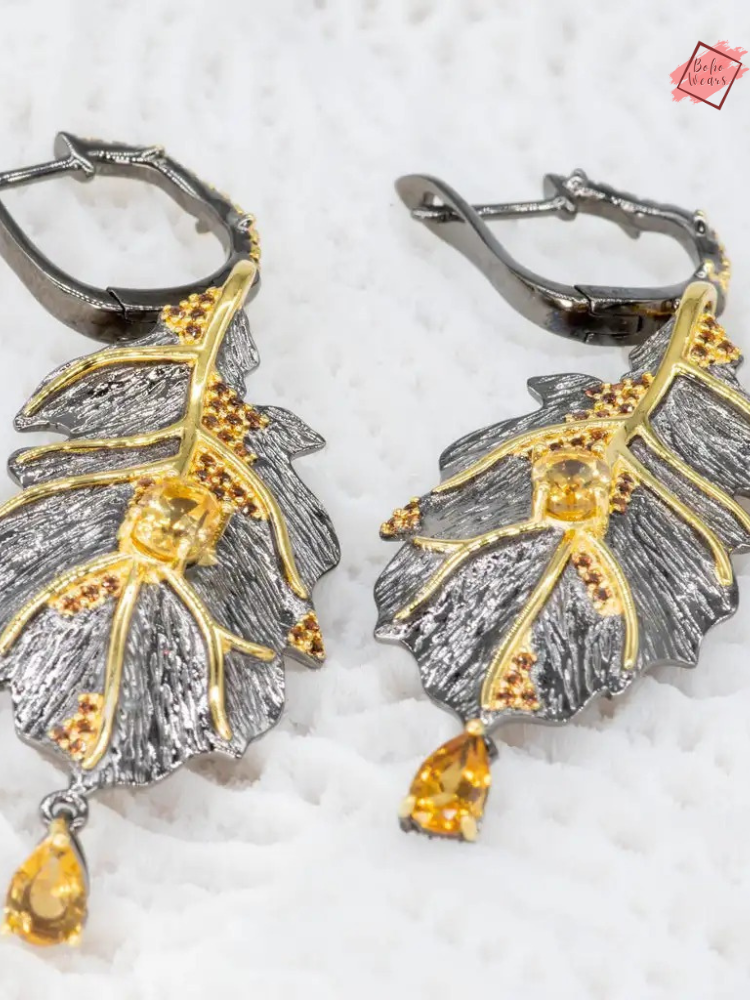 Elevate your elegance with these exquisite Handmade Monstera Leaves Earrings, a true masterpiece of fine jewelry. Inspired by the artistry of Georgia O'Keeffe, these earrings feature natural Citrine gemstones that radiate warmth and positivity.