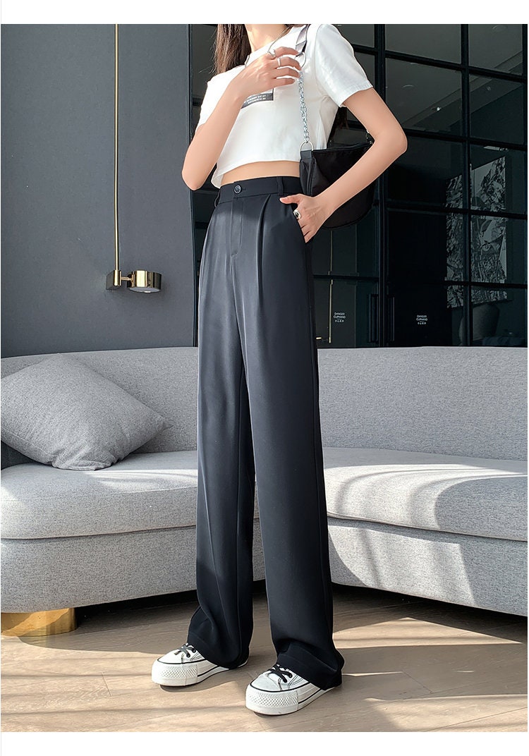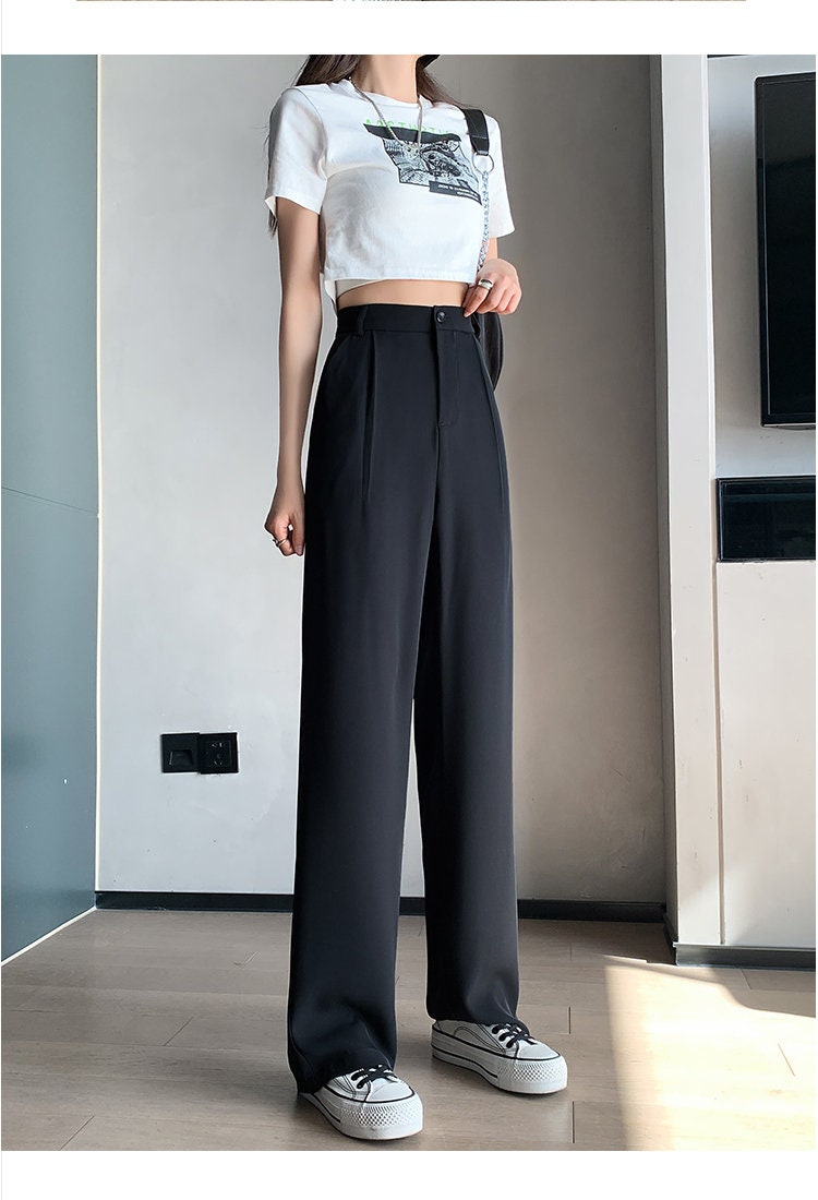 High Waist Trouser Pants For Women Black Wide Loose Floor Length Pants