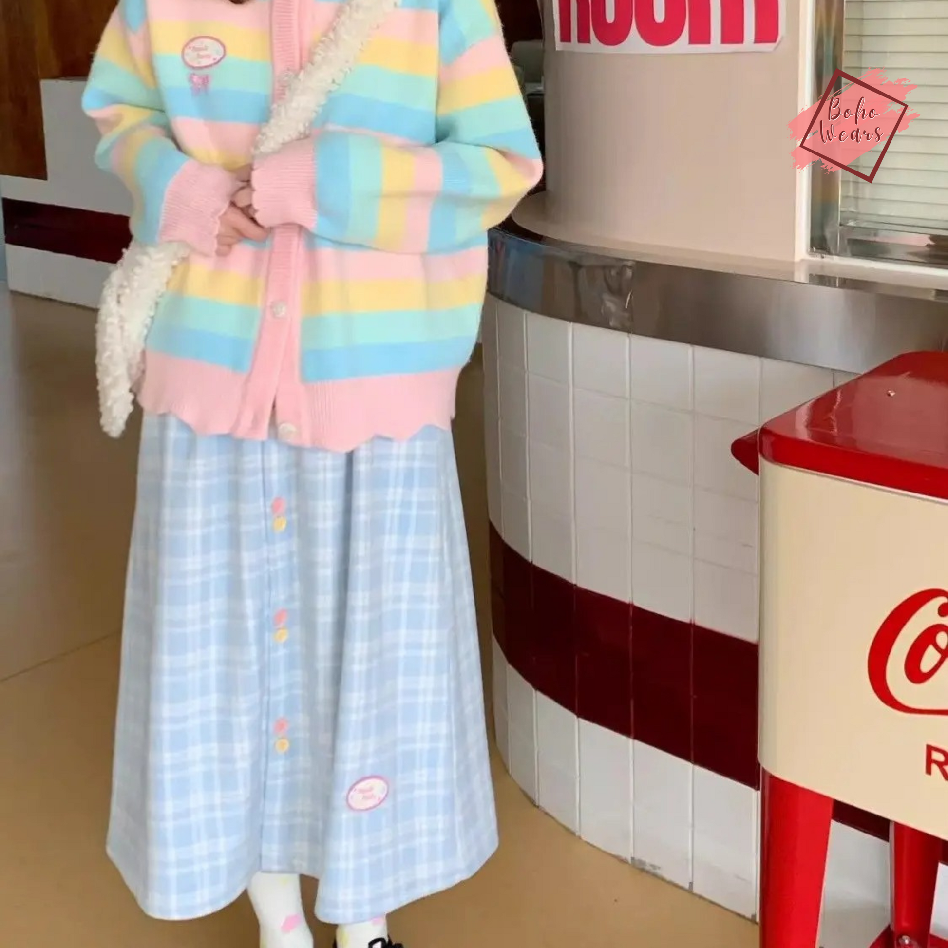 Embrace the sweetness of winter fashion with our Kawaii Plaid Skirt. Whether you're heading out for a casual day or a special event, this skirt adds a touch of charm to your seasonal wardrobe.