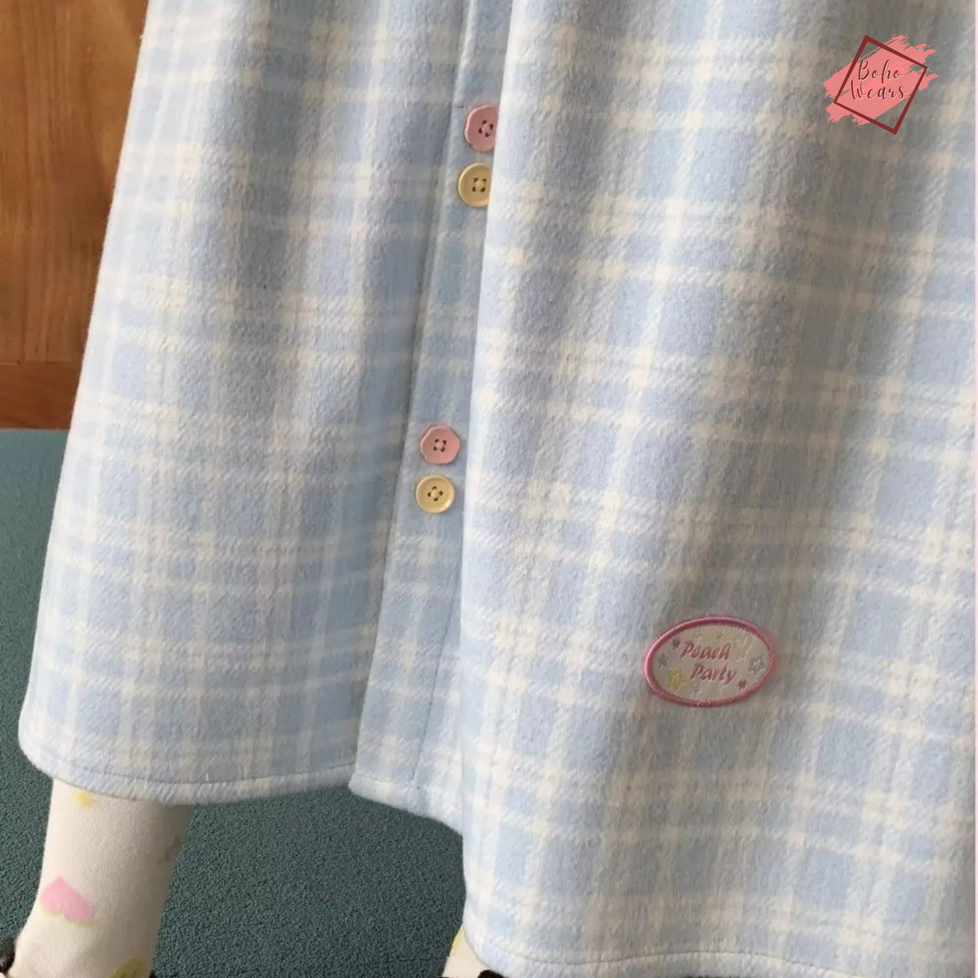 - Charming Details: Adorned with cute buttons and a timeless plaid pattern for a sweet and elegant look.