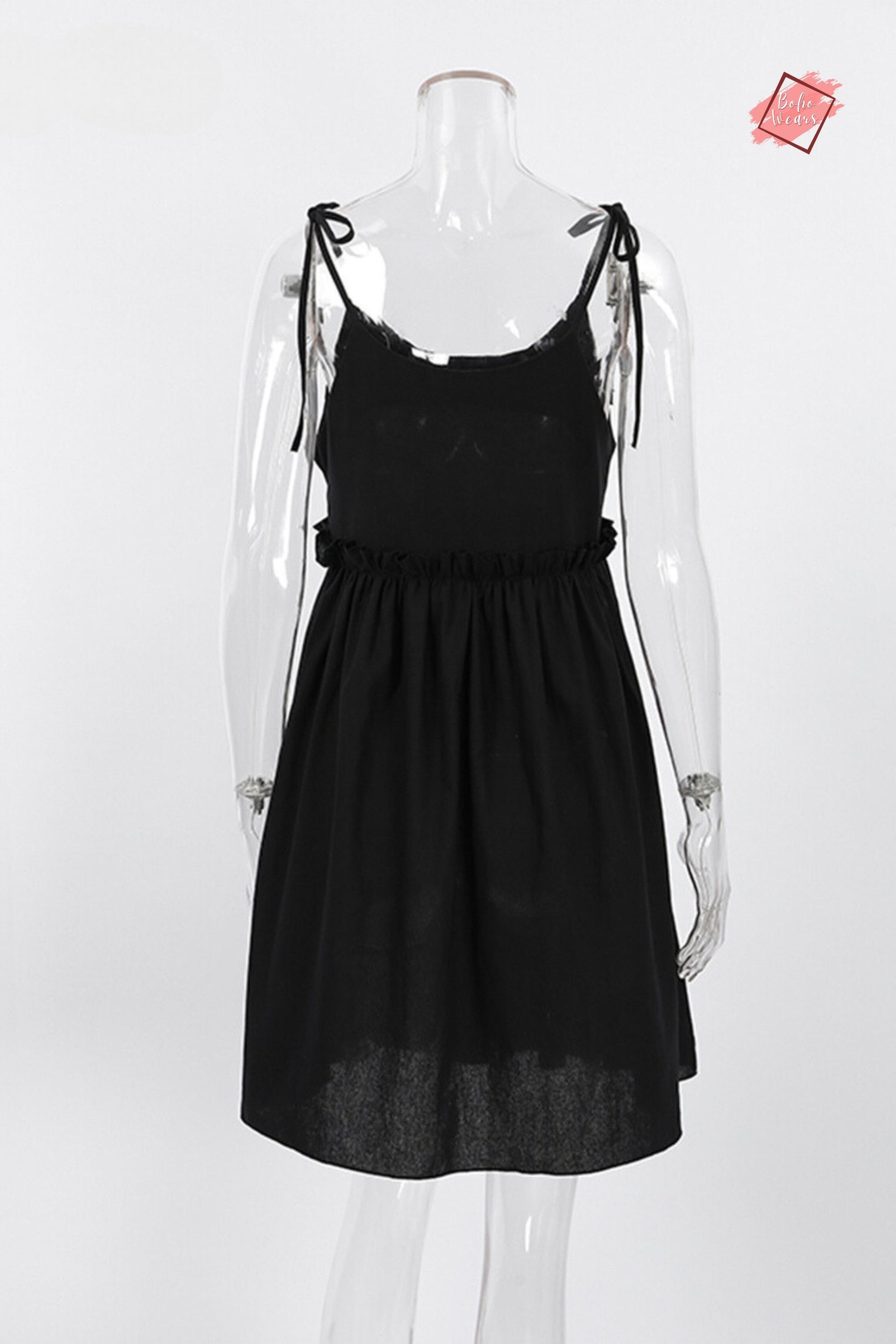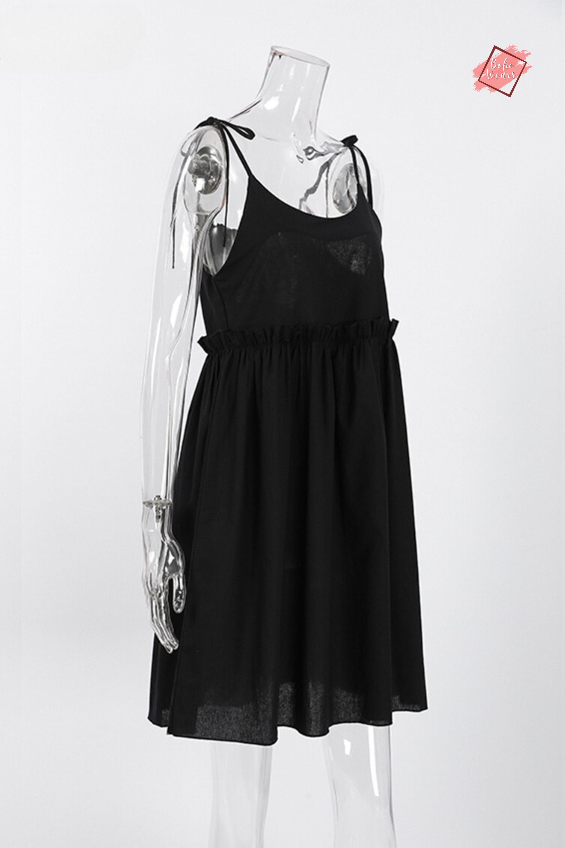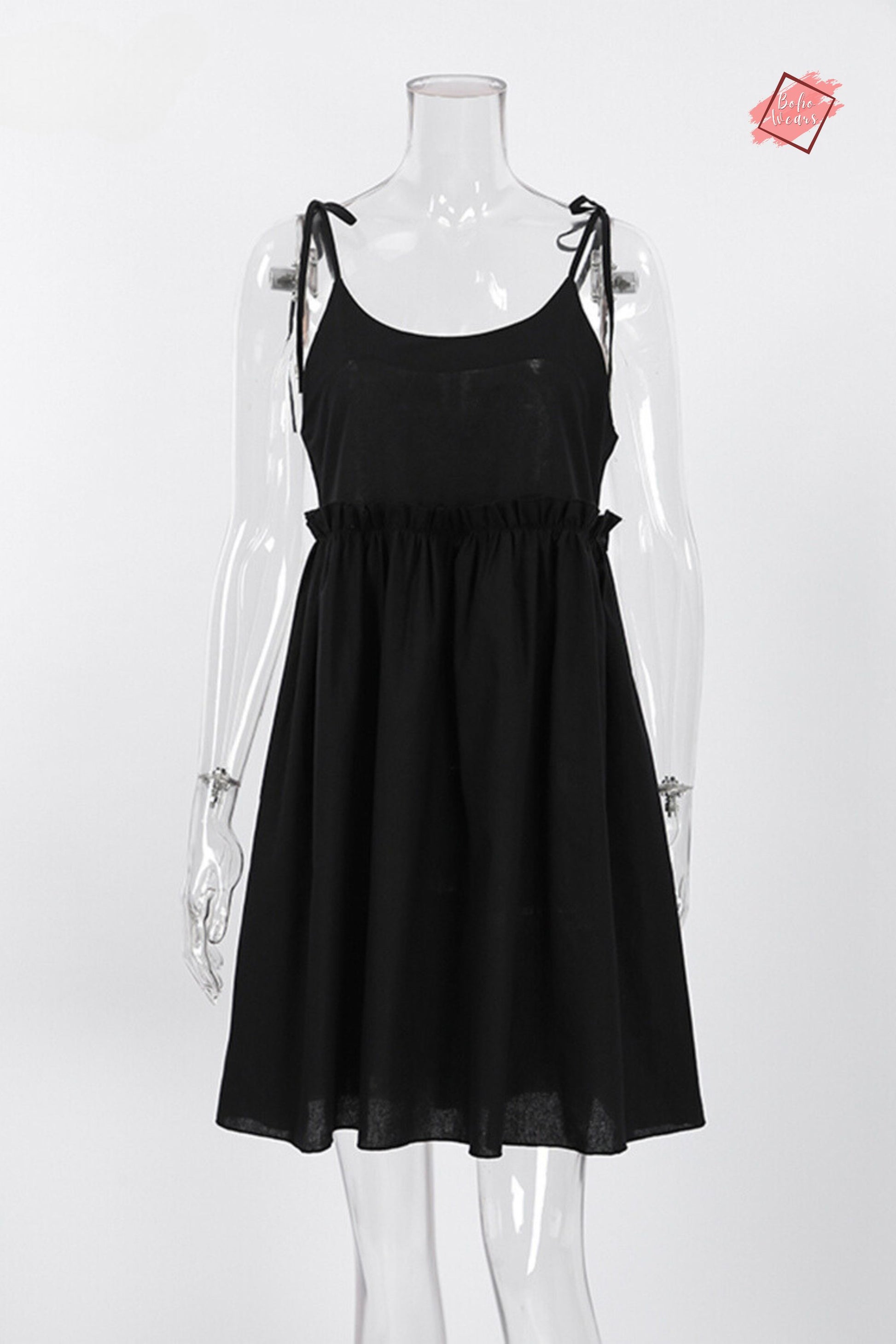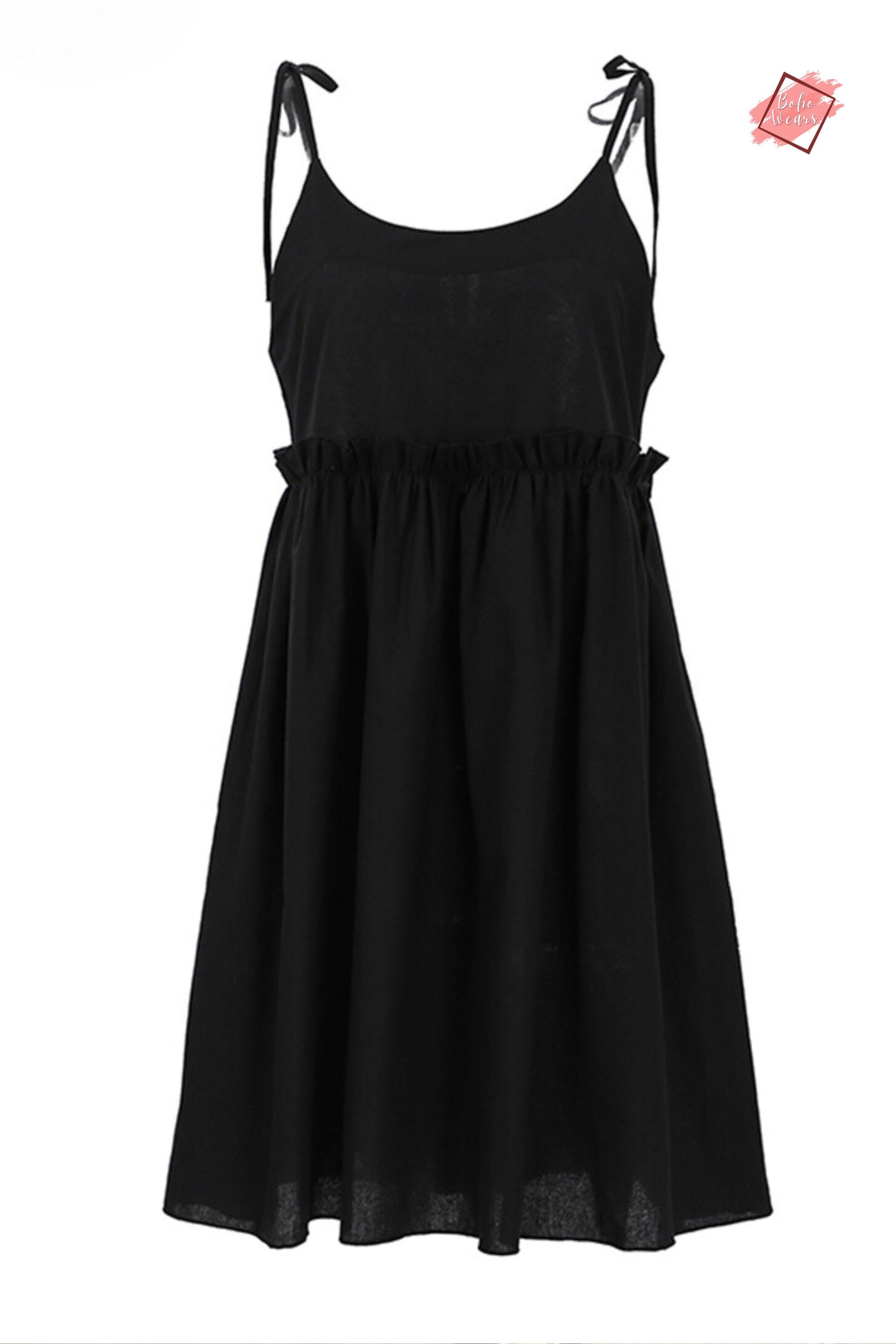 Linen A-Line Mini Dress with Spaghetti Straps and Lace-Up Detail - BohoWears Women's Summer Fashion