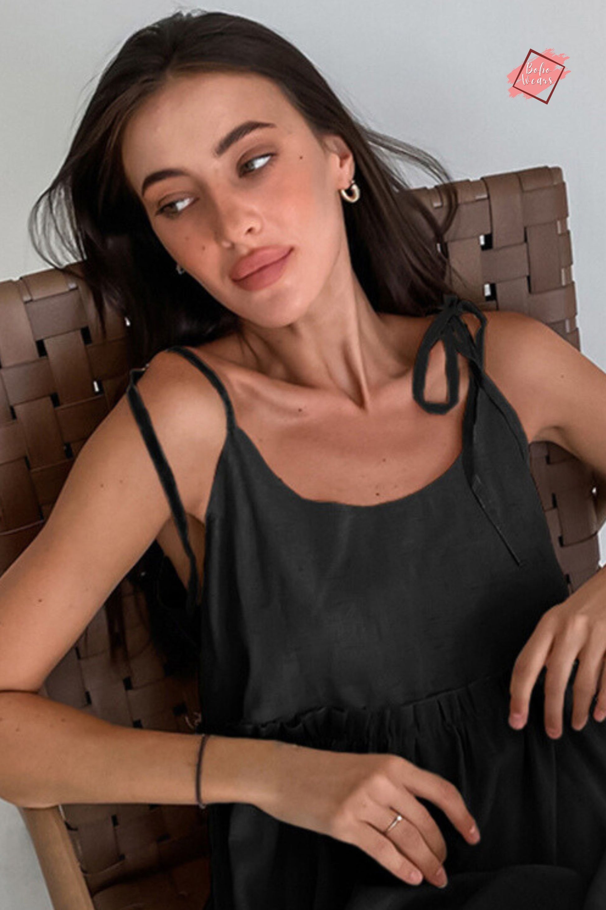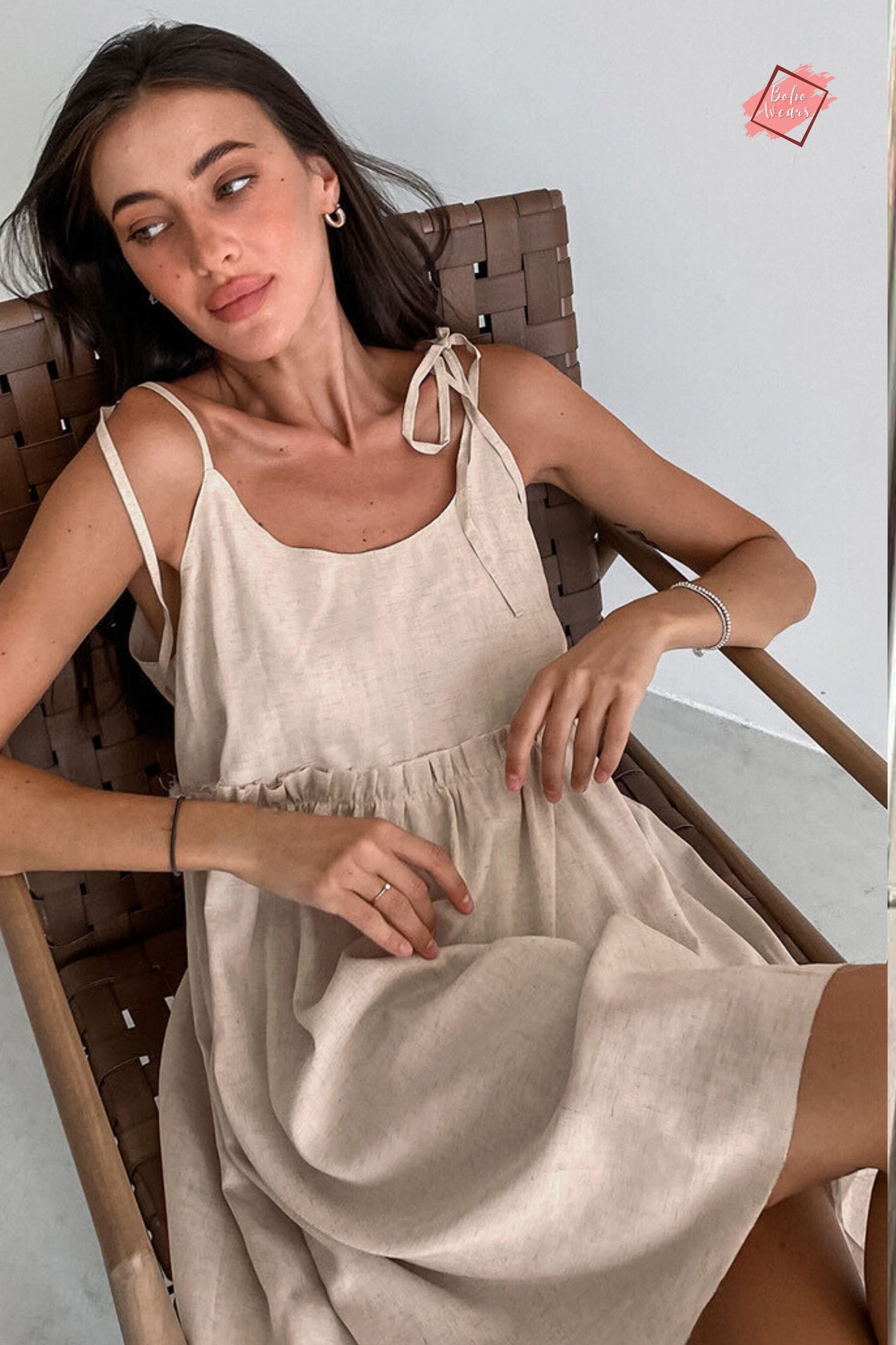 Slip into breezy bohemian style this season with this effortlessly chic linen spaghetti strap dress from Bohowears!