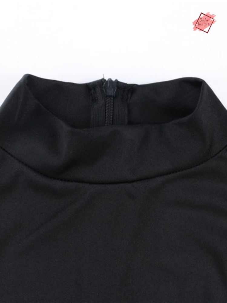 In classic black, this dress is perfect for spring and autumn seasons. Its solid pattern and slim fit design emphasize your curves, making it ideal for clubs, cocktail parties, and special events.