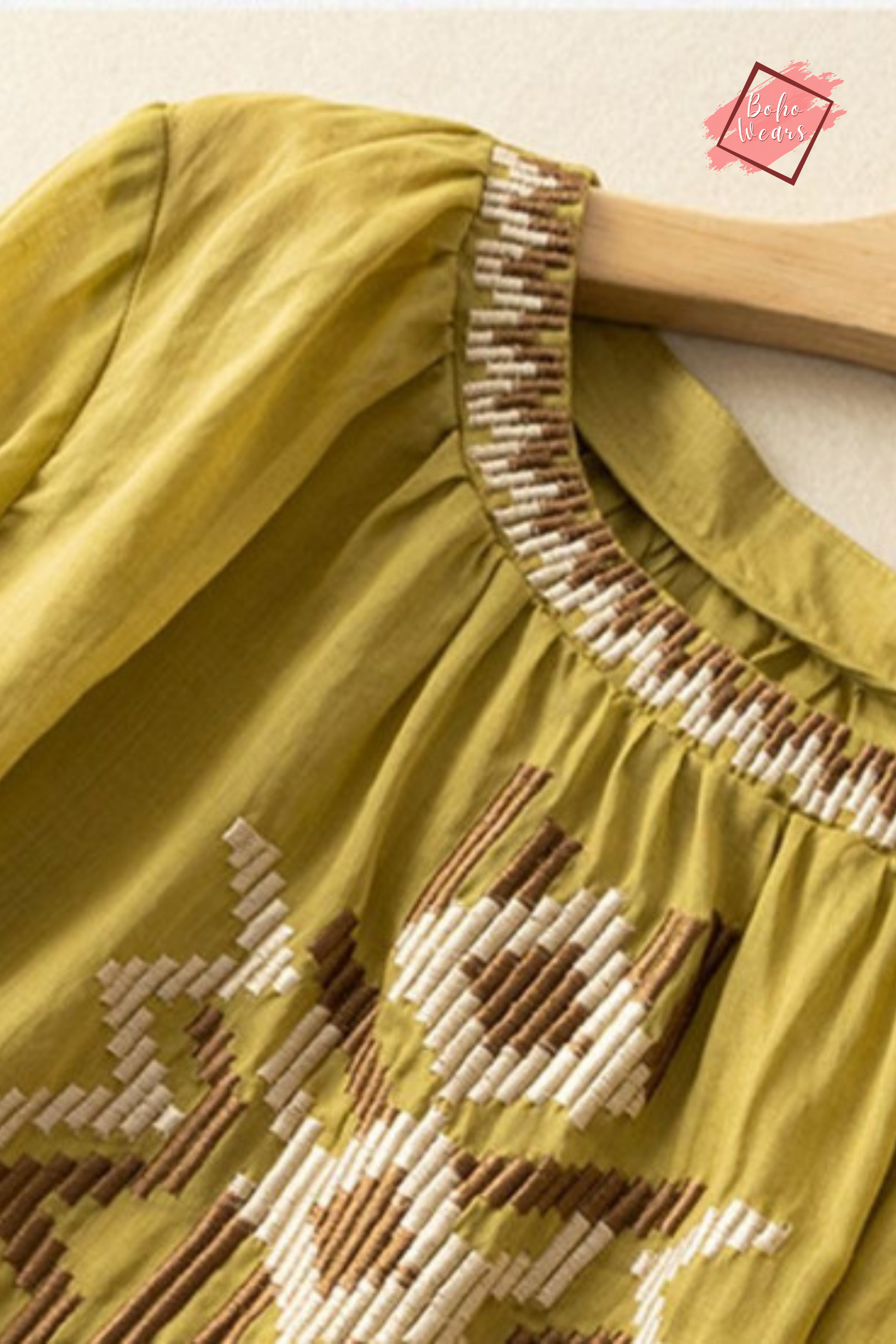 Soft Cotton Embroidered Top - Handmade Boho Pullover - Fashionable Women's Cotton Blouse